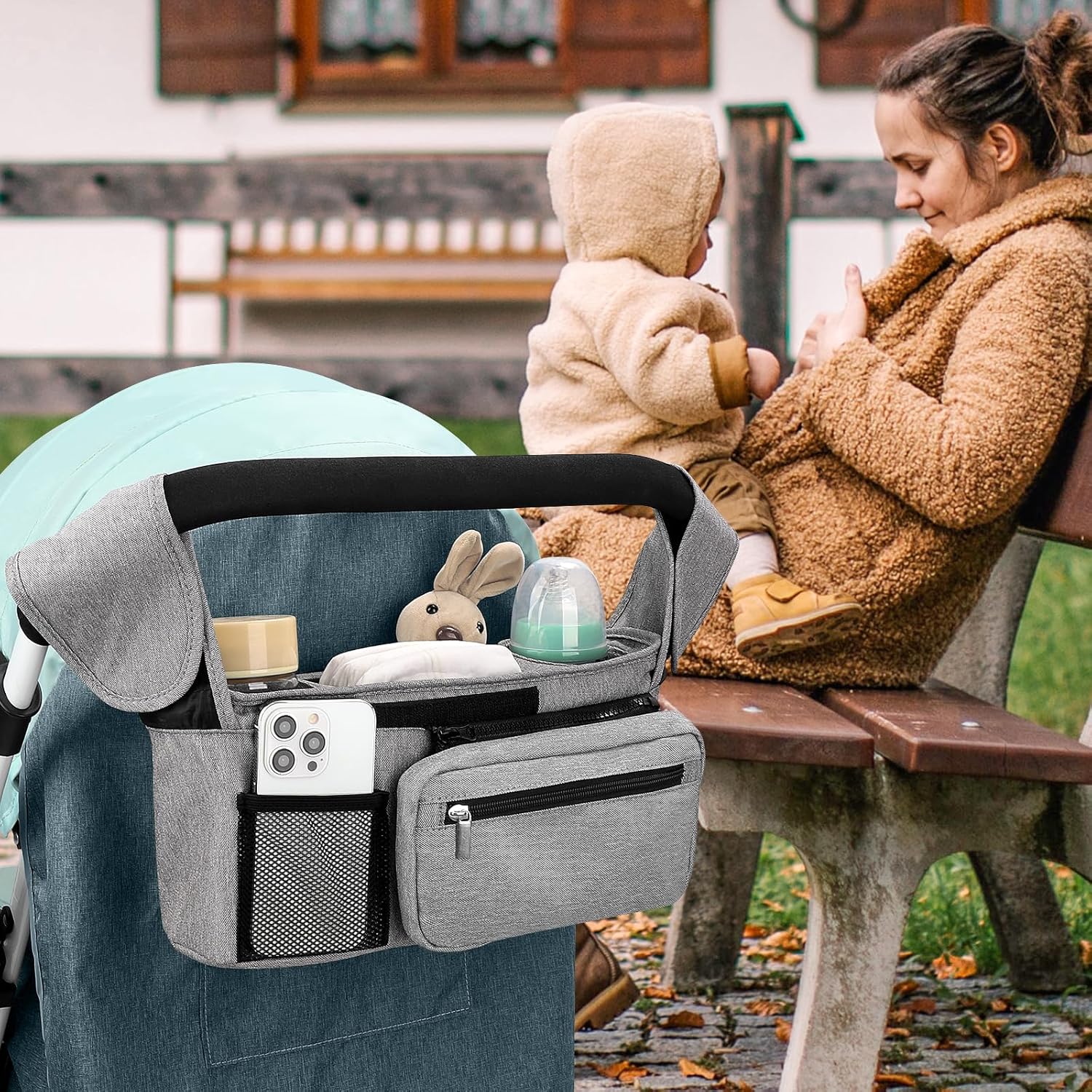 - Multiple Usage Methods : It can be hung as a stroller cup holder organizer on the stroller. When you don't need to use a stroller, you can also install the accompanying strap and carry this organizer bag for easy outing.