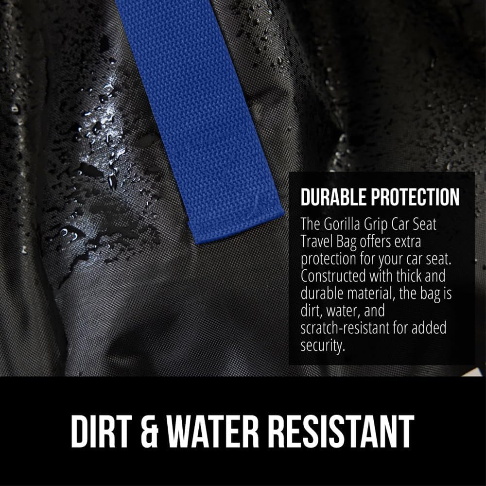 - DURABLE PROTECTION FOR YOUR CAR SEAT: a must for traveling, the Gorilla Grip Car Seat Travel Bag is designed to help protect your car seat while you travel; bag is water, tear and dirt resistant; features drawstring closure that tightly closes around the car seat, helping to protect from dirt, grime and moisture; bag is made of lightweight, yet durable material that can be machine washed​