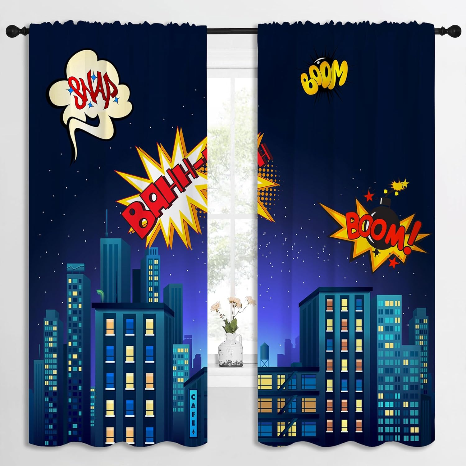 - ✿【Fashion Design】: Elevate your room decor with these Superhero theme printed decorative curtains featuring Cartoon Skyline Buildings Cityscape Design. They're for any room.