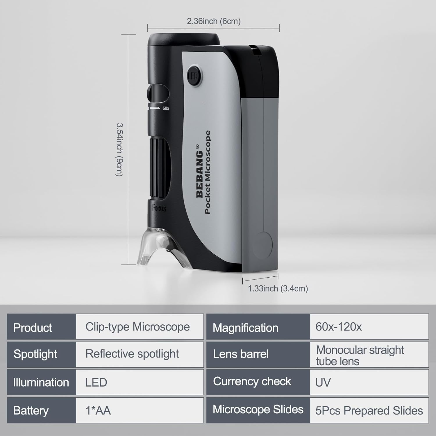 BEBANG Pocket Microscope,60X-120X Handheld Mini Microscope for Kids with LED Lighted Zoom, Portable Microscope Kits with 5 Pcs Slides for Adults Microbiological Observation Preschool Home Study Gifts