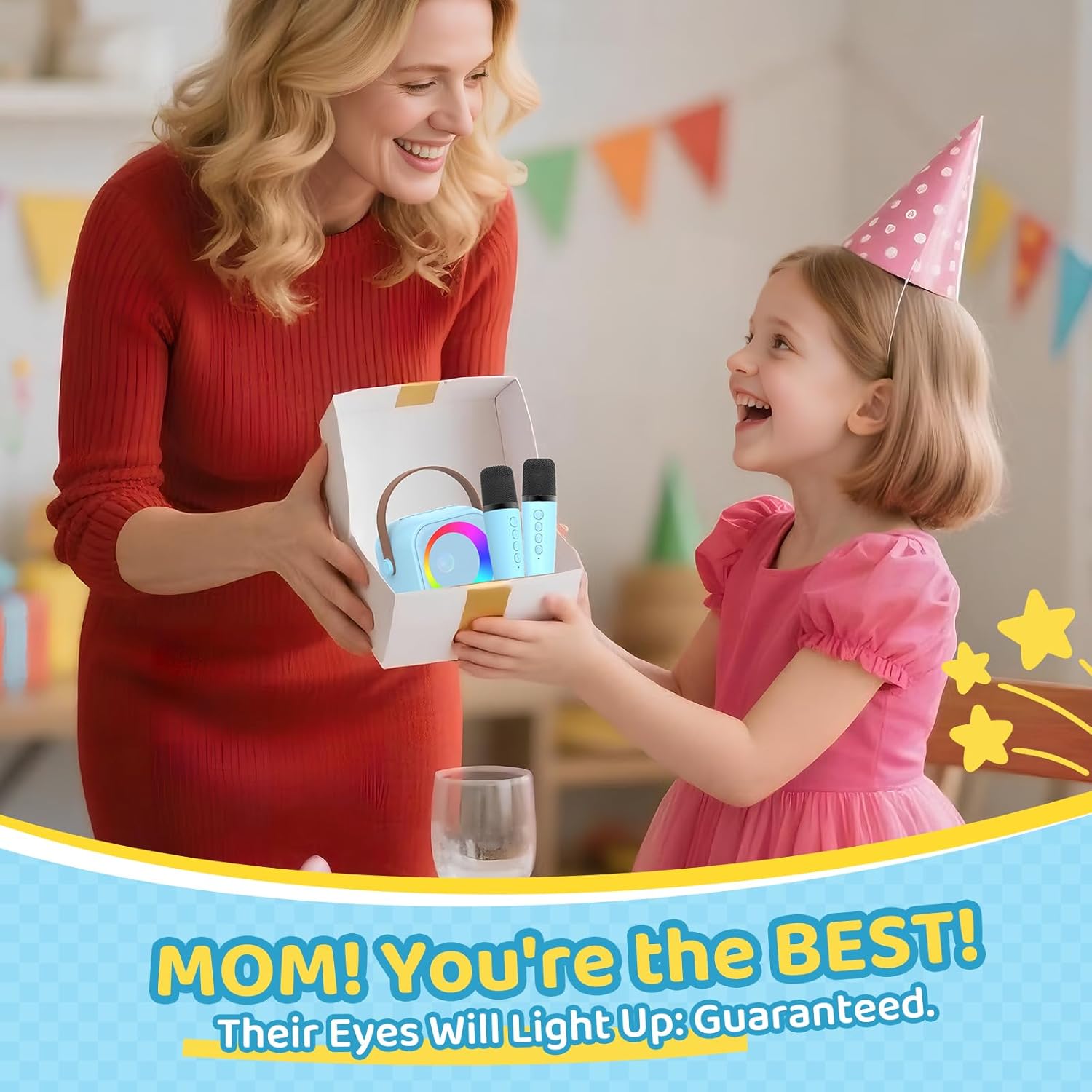 Karaoke Machine for Kids, Toys for 3-12 Years Old Girls Gifts, Kids Karaoke Microphone Machine Toy, Best Fun Christmas Birthday Gifts for 5 6 7 8 9 10 11 Years Teens Girl Boys Blue 2 Mic