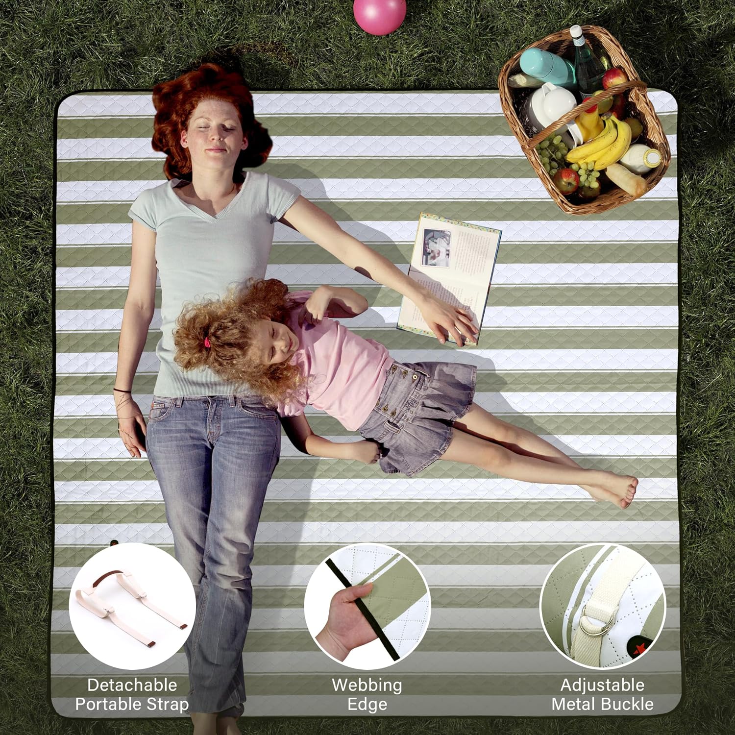 HX&OD Outdoor Picnic Blanket Extra Large, 80”x80” Waterproof Picnic Mat Foldable Camping Blanket Portable with Carry Strap for Beach Mat (Green)