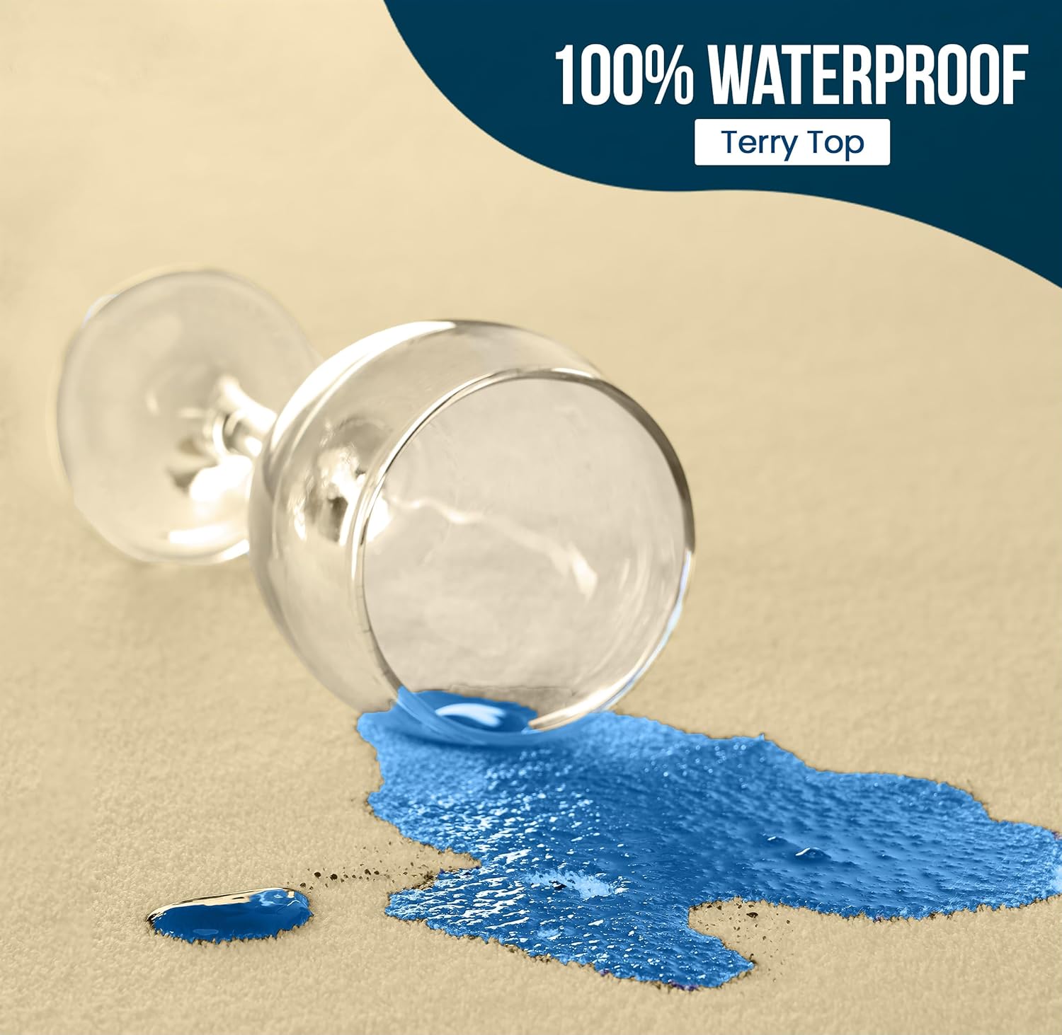 - Waterproof Terry Top - The mattress protector protects your mattress from unwelcome spills and keeps your mattress clean and safe. High-quality TPU backing secures your mattress from the top and resists any leakage into the mattress.
