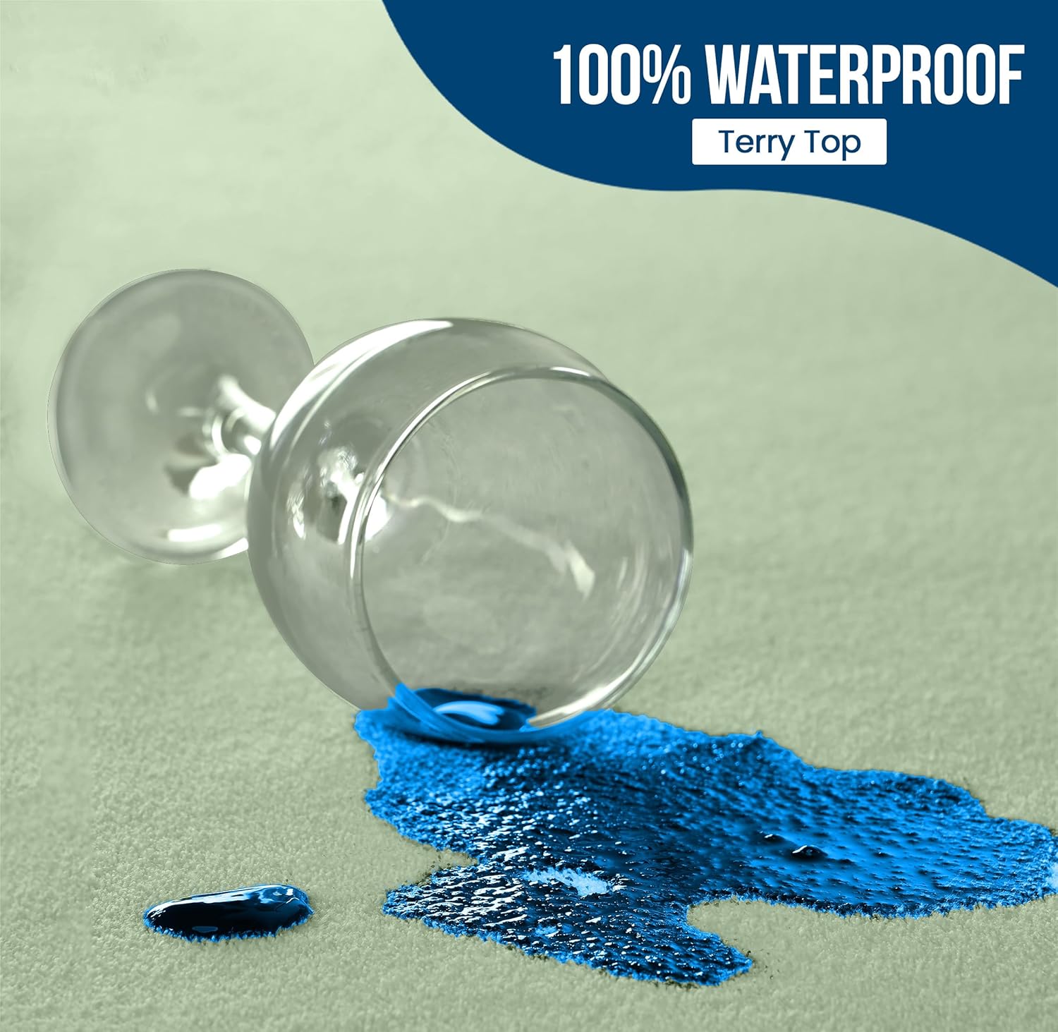 - Waterproof Terry Top - The mattress protector protects your mattress from unwelcome spills and keeps your mattress clean and safe. High-quality TPU backing secures your mattress from the top and resists any leakage into the mattress.