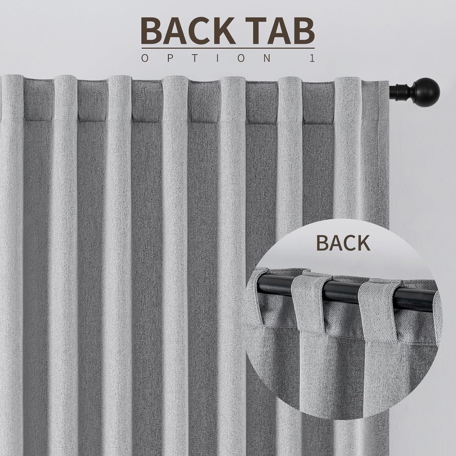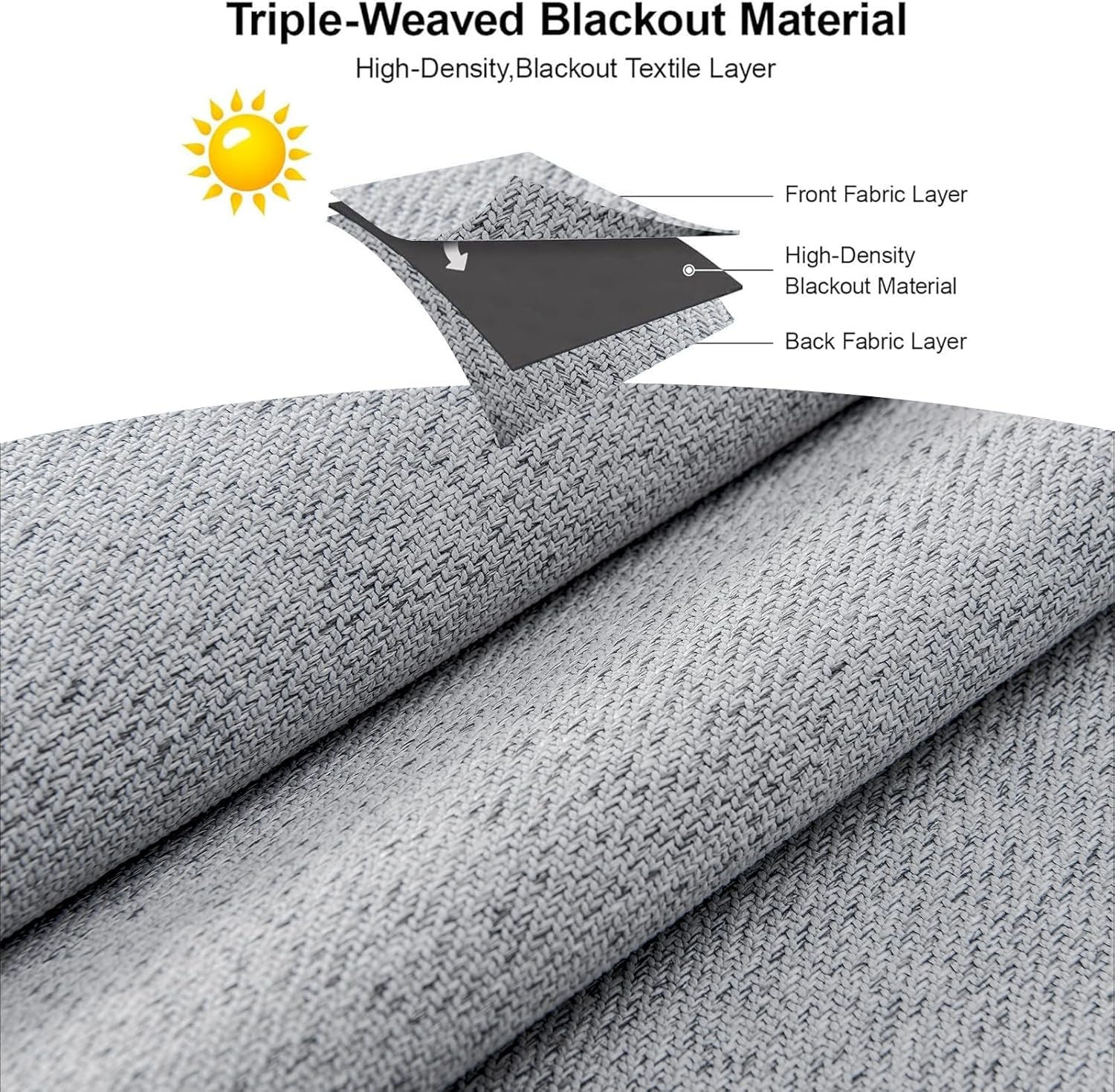 Joydeco Faux Linen Blackout Curtains for Bedroom,Light Grey Blackout Curtains 120 inches long,100% Blackout Solid Thermal Insulated Window Drapes Luxury Decor for Living Room(W52xL120 Inch,Light Grey)