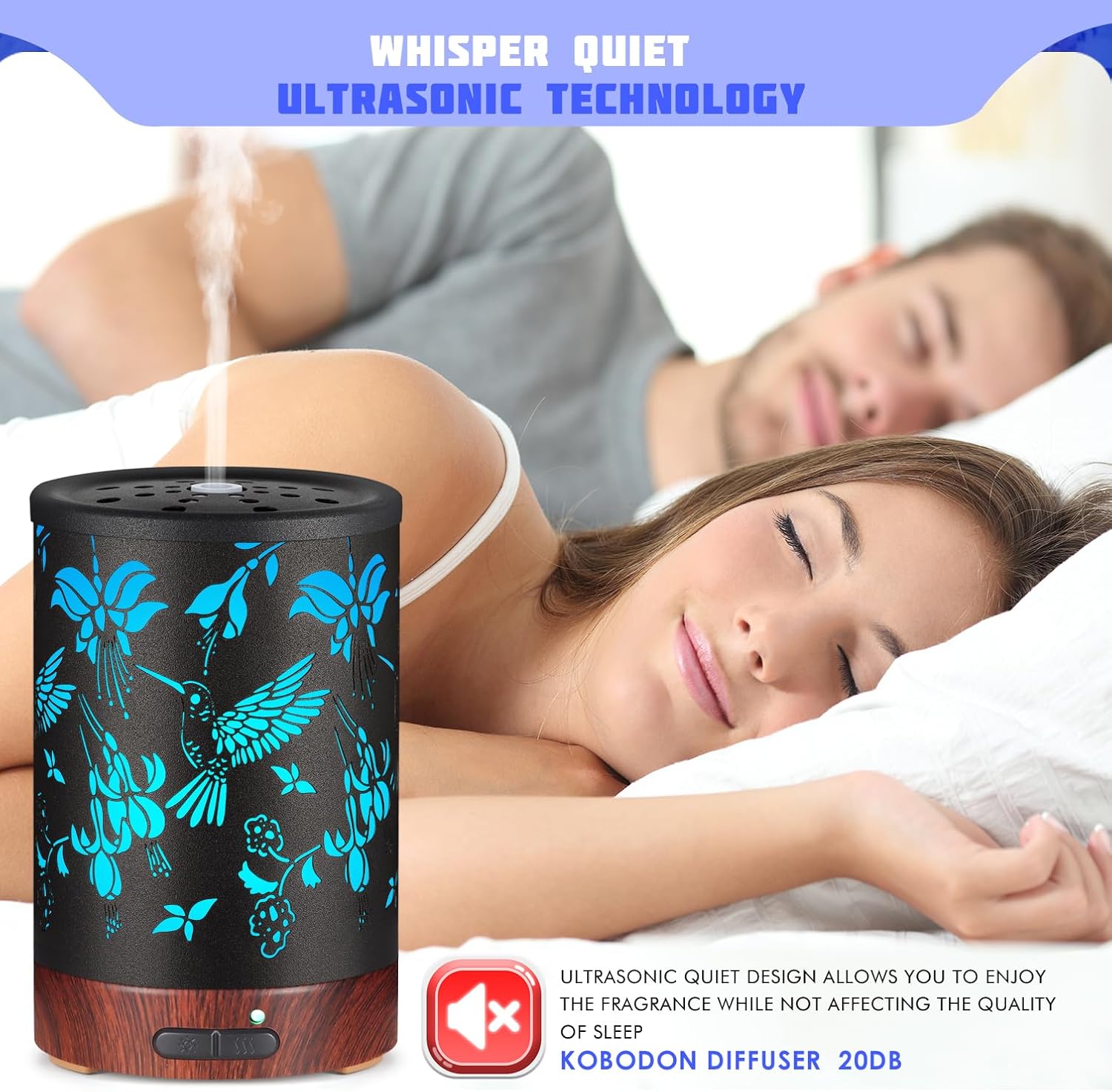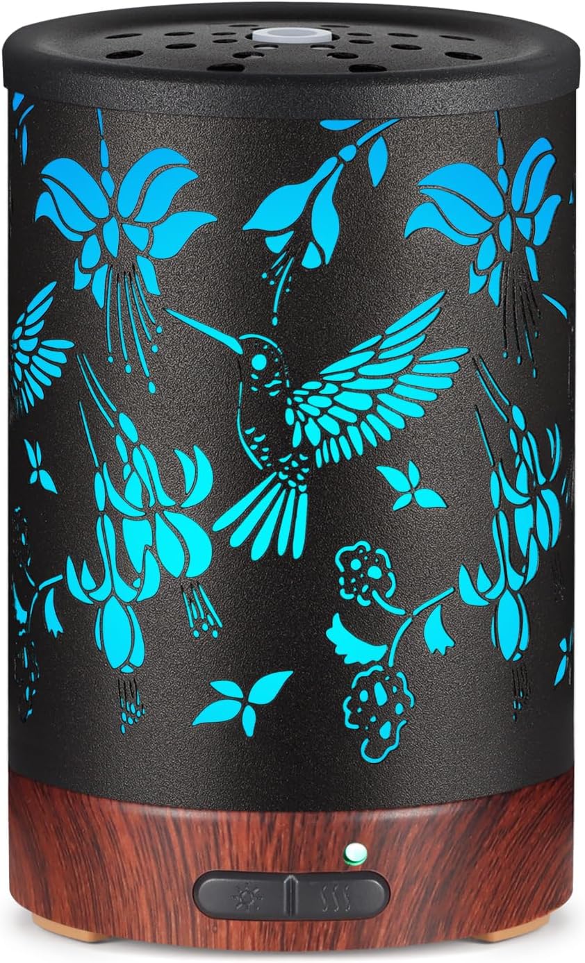 Metal Essential Oils Diffuser 150ML Christmas Aromatherapy Diffuser Cool Mist Humidifier with 7 Colors Lights Waterless Auto Off Air Diffusers as Gifts for Mom (B-Hummingbird)
