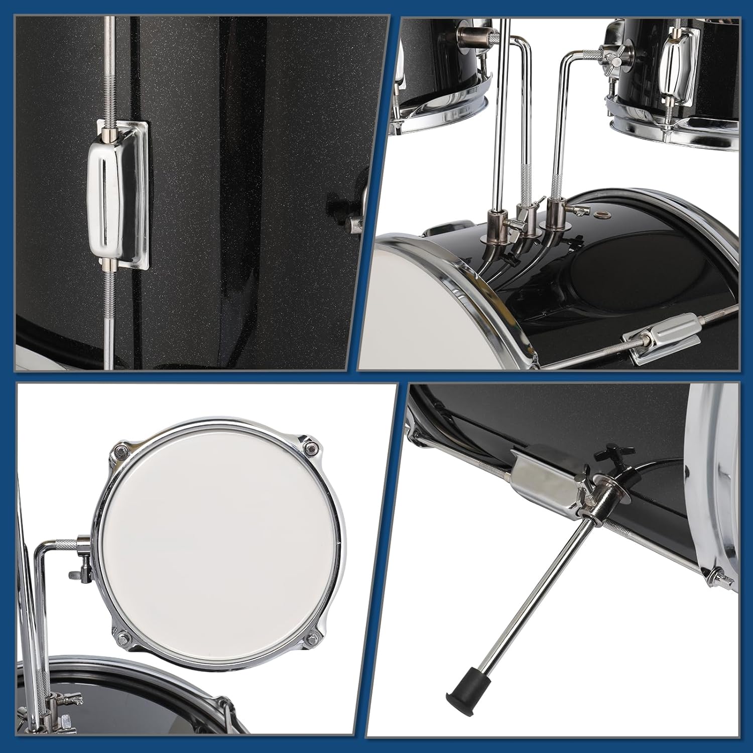 - 【Easy to Assemble & Clean】With straightforward assembly instructions and a drum key, easily assembles in 30 minutes. What's more, the drums feature a glossy electroplated finish that easily cleans up with a wet wipe. The set size is a 14" x 10" Bass drum, 8" x 4" & 6" x 4" Tom-Tom drums, 8" x 4" snare drum, 12"x 8" floor drum, 8" Hi-Hats, and 10" cymbal