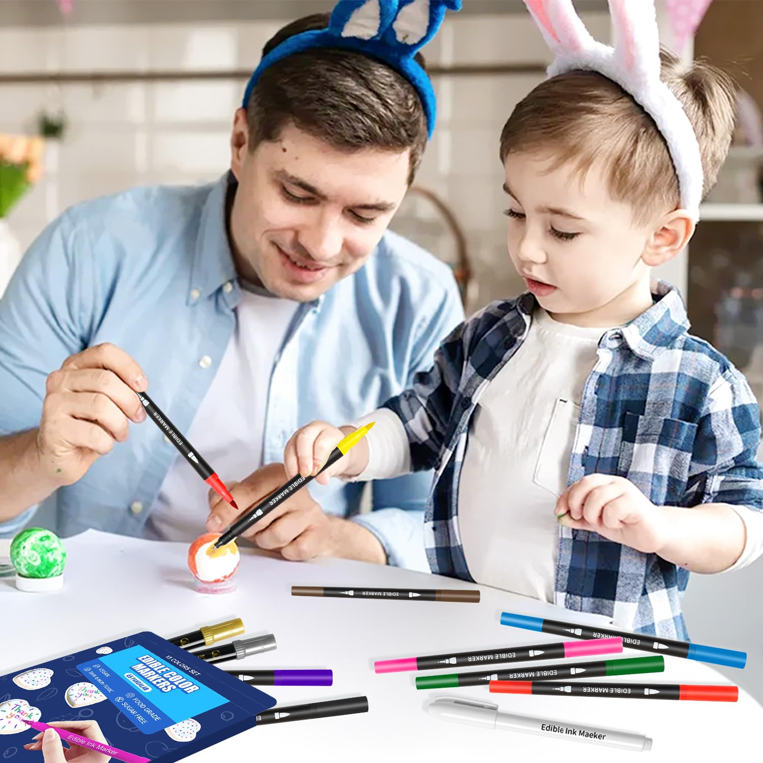 Edible Markers, Colorful Metallic Gold Food Coloring Pens, 13 pcs Writer with Brush Tip for Decorating Cookies, Fondant, Gum paste, Icing, Macarons, DIY Easter Eggs, Marshmallows, Fruits.