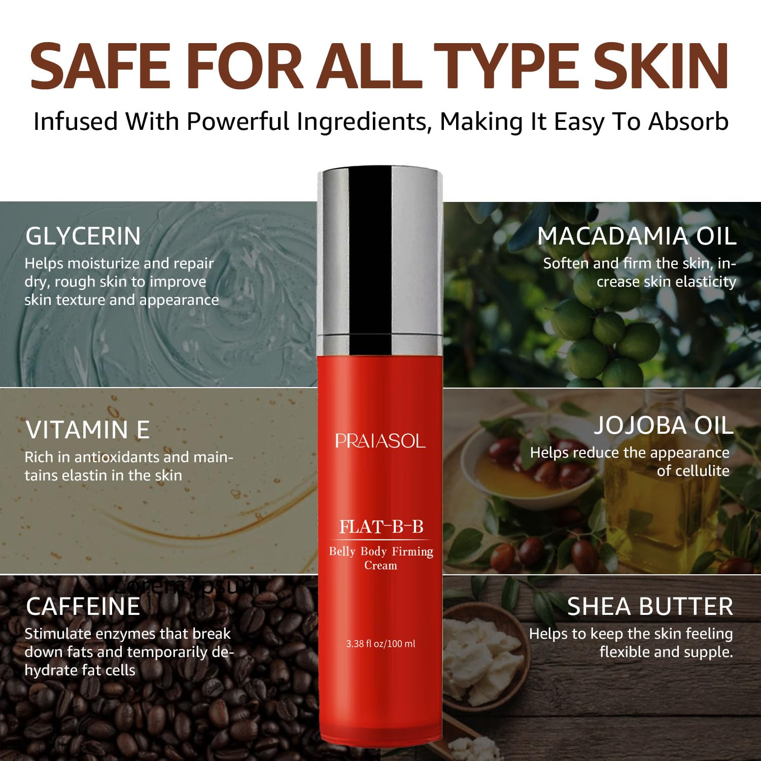- Skin Tightening for Belly: Skin firming cream can make your abdominal skin firmer and smoother. Besides the abdomen, you can also use it on other areas such as the stomach, arms, thighs, and buttocks