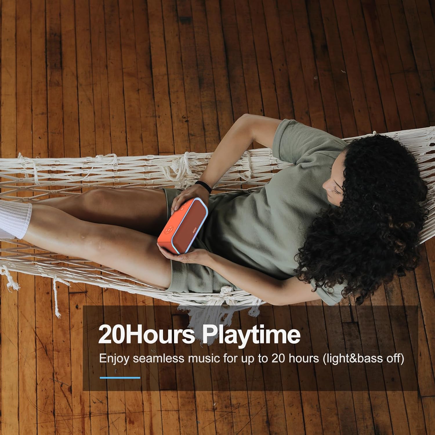DOSS SoundBox Pro Bluetooth Speaker with 20W Stereo Sound, Active Extra Bass, IPX6 Waterproof, TWS Pairing, Multi-Colors Lights, 20H Playtime, Portable for Beach, Outdoor-Orange