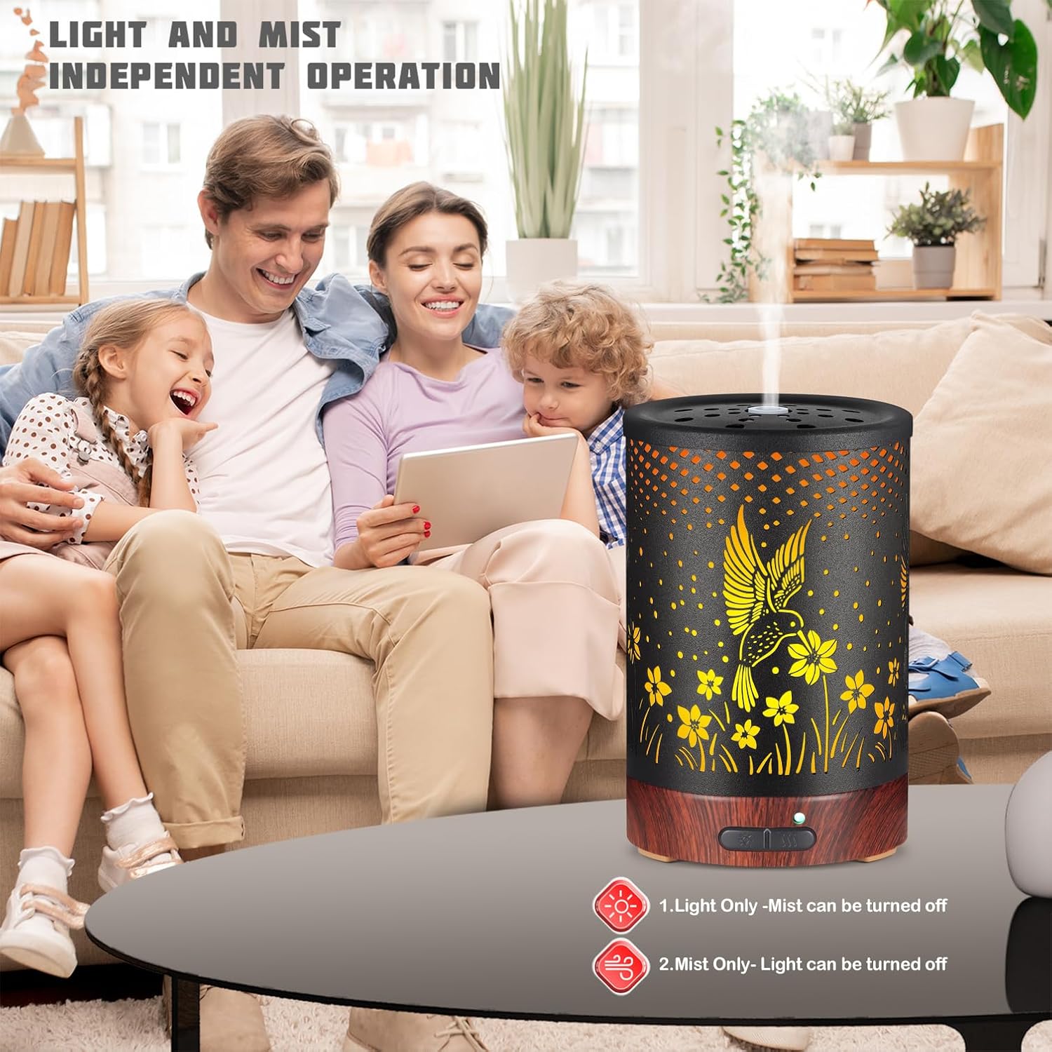 Essential Oils Diffuser,Aromatherapy Diffuser,Birthday Gifts for Women Mom Grandma,Metal Cool Mist Humidifier with 7 Colors Lights Waterless Auto Off Air Diffusers (C-Hummingbirds)