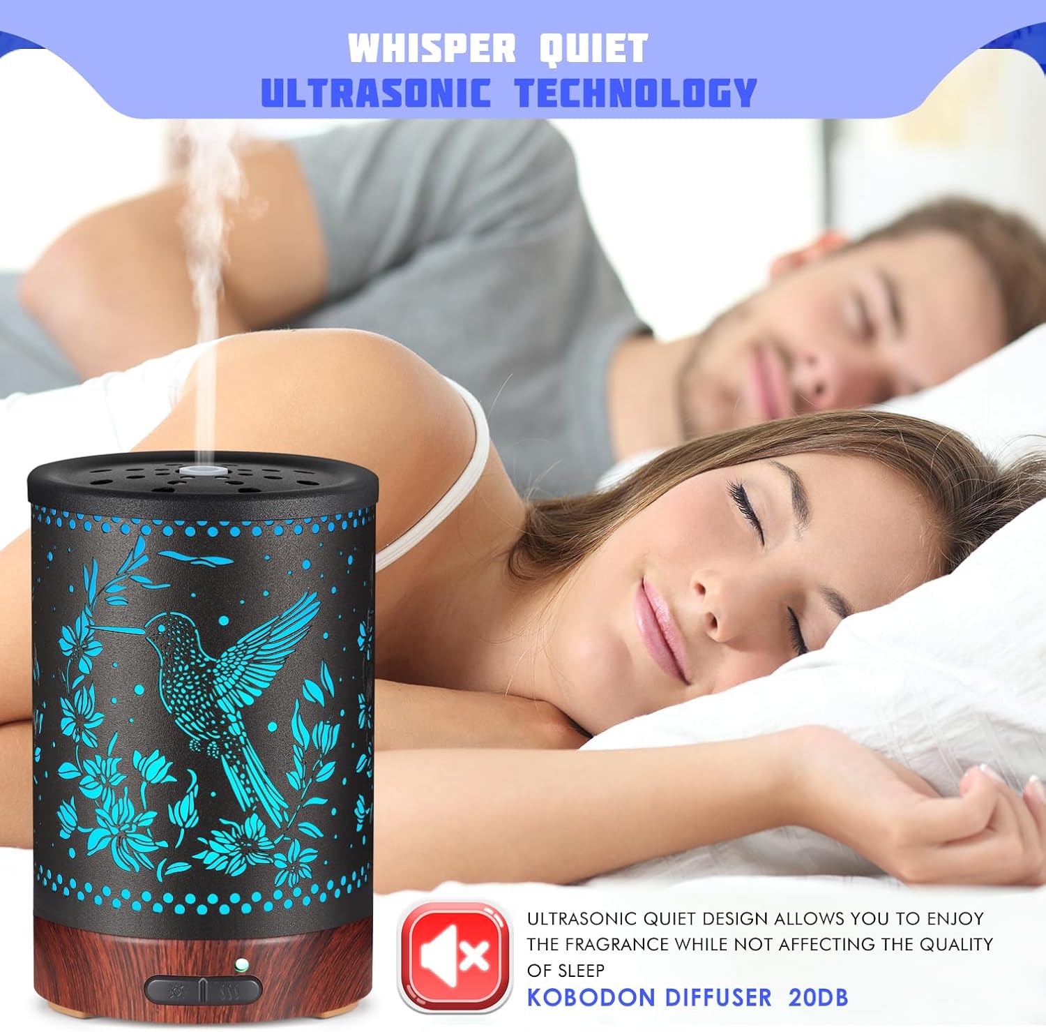 - 【Multifunctional Design】Kobodon Aromatherapy essential oil difusser cool mist humidifier night light. Also a beautiful room decor. Continuous cool mist and savor the pleasing scents to give your home a fresh, fragrant scent, gently humidify the air , relieve stress, and revel in deep relaxation. Great ideal for home, office desk, bedroom nightstand, yoga studios,spa,office.