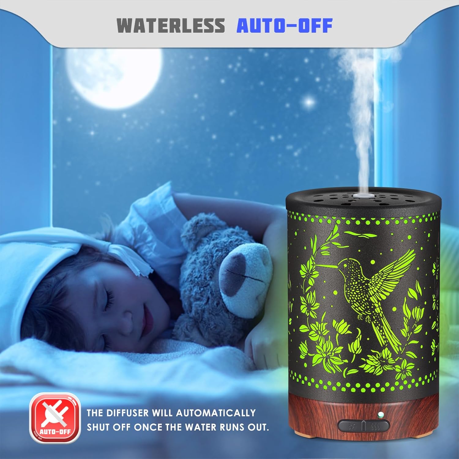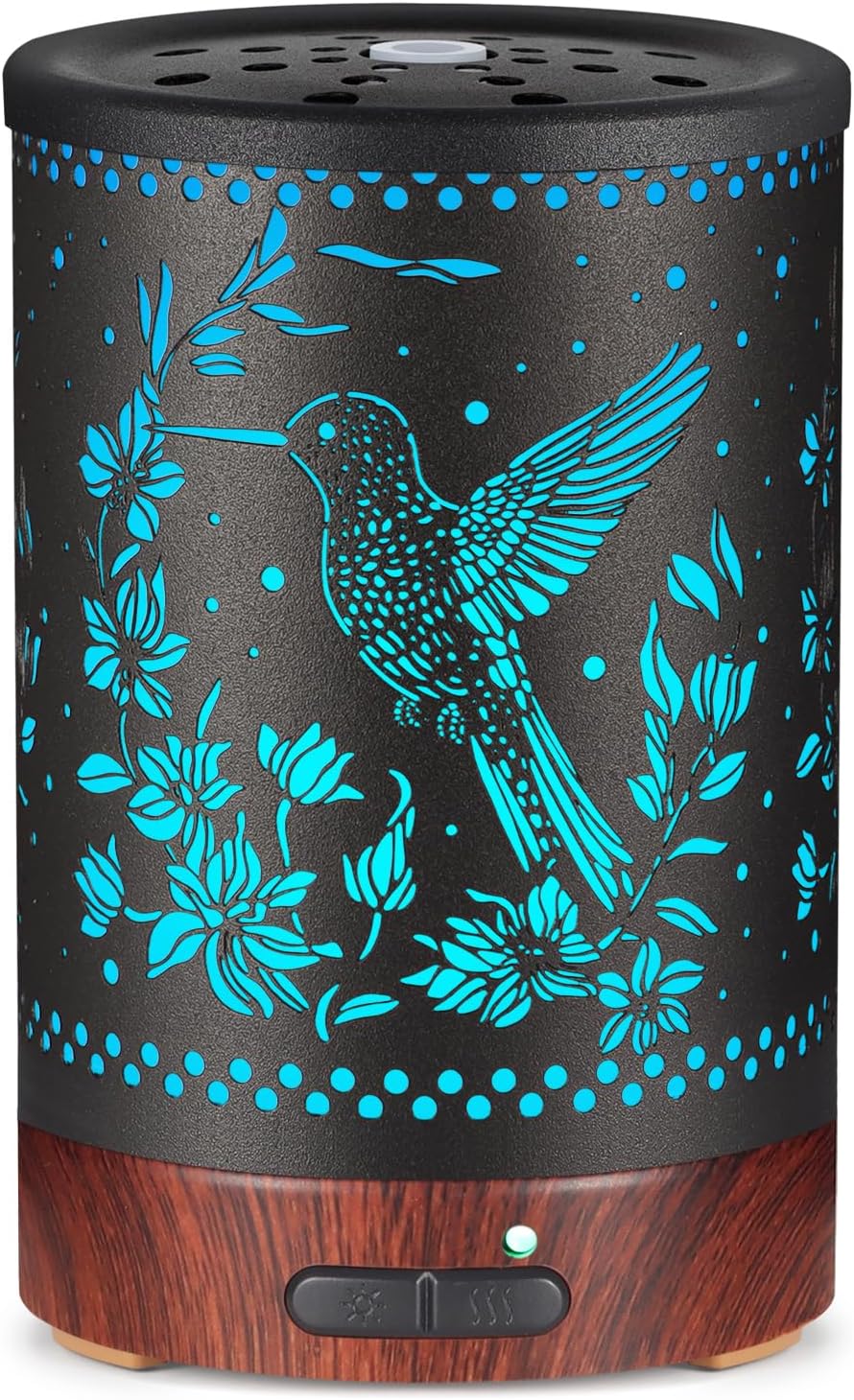 Metal Essential Oils Diffuser 150ML Aromatherapy Diffuser Cool Mist Humidifier with 7 Colors Lights Waterless Auto Off Air Diffusers as Gifts for Moms Women Girls (E-Hummingbird)