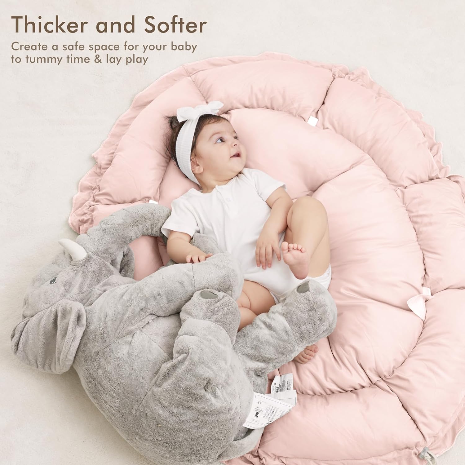 - THICKER & SOFTER: The reversible play mat crafted from premium plush material, offers a fantastic amount of cushion. Its neutral color scheme blends in with your homeโs aesthetic so you can keep it out even after playtime is over.
