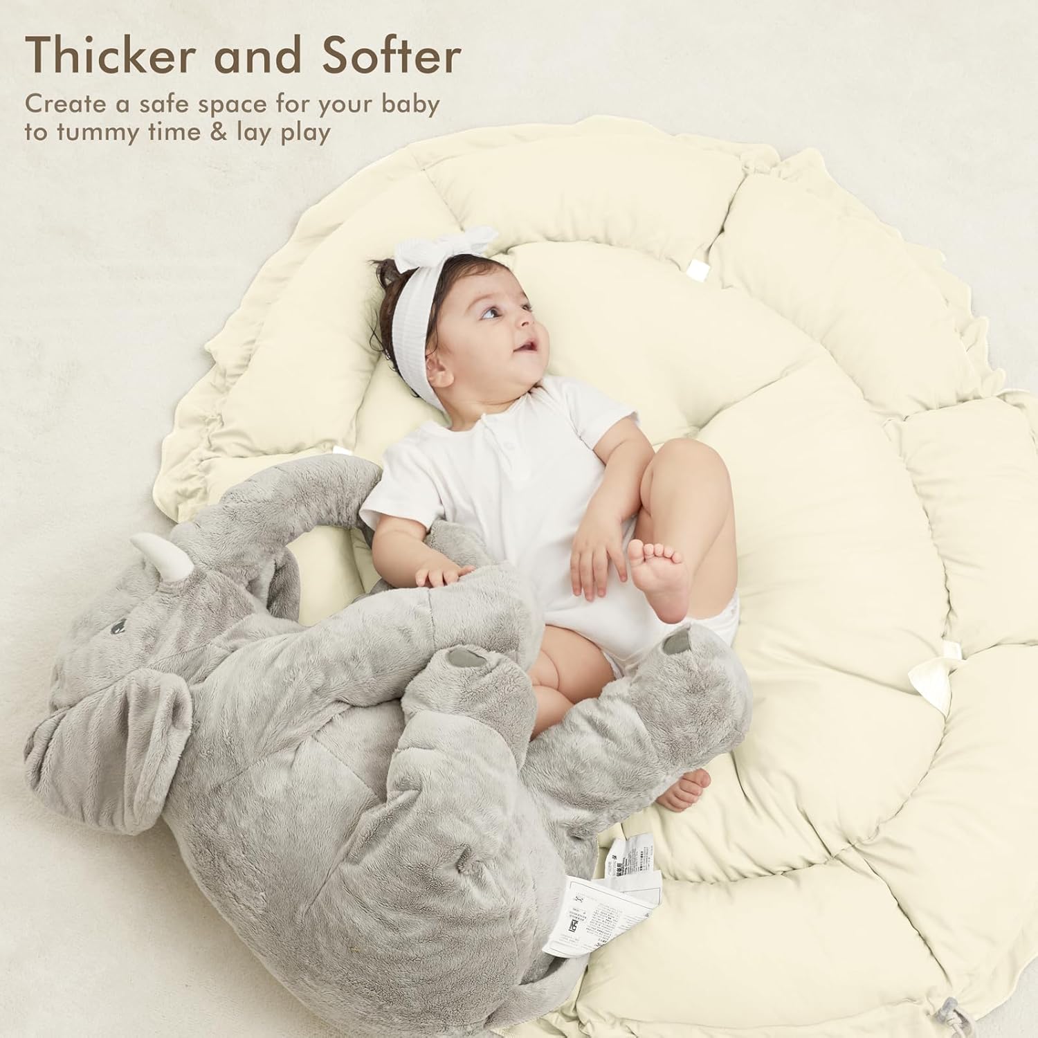 - THICKER & SOFTER: The reversible play mat crafted from premium plush material, offers a fantastic amount of cushion. Its neutral color scheme blends in with your homeโs aesthetic so you can keep it out even after playtime is over.