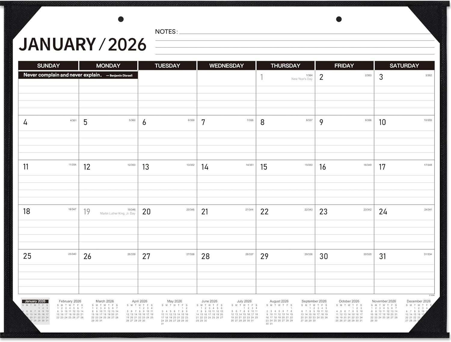 - Make Your Life More Efficient - The 2026 calendar desk is designed in classic black and white, with different quotes every month, which can be used with any scene. With this calendar 2026, you can take notes, ideas, meetings, etc. to improve your time management skills and make your life and work full of vitality and wisdom. To regular customers:This calendar will not be folded in half for shipping. Our packing is rolled, which can reduce the creases less. After upgrading, the back cover of this large calendar is changed from cardboard to woven cloth, which is more convenient for you to fold and store.