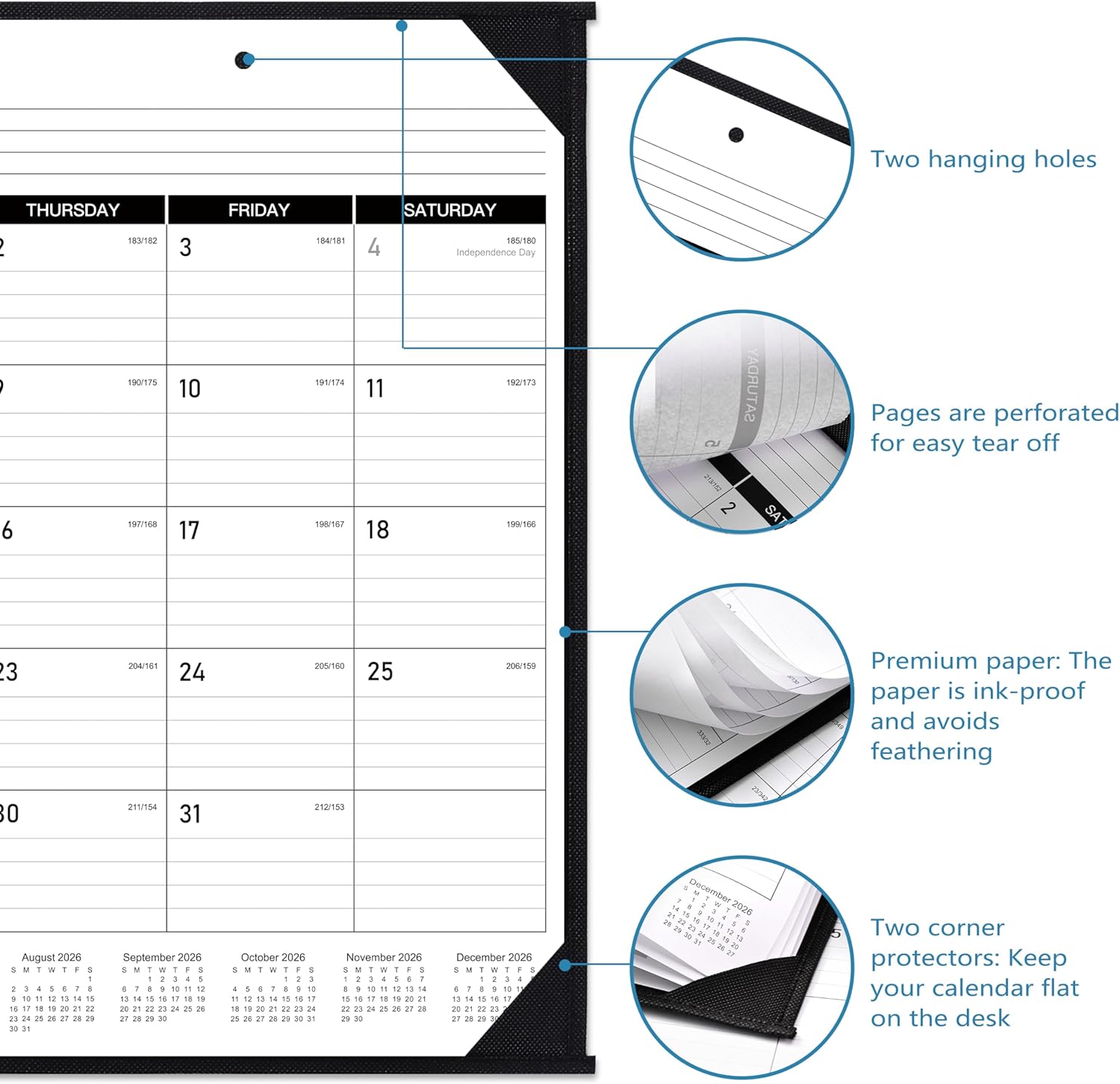 - Function Design - This large desk calendar 2026 can be used to switch between desk calendar or wall calendar as needed. It has two transparent corners and hanging holes. The hanging holes make it easy to use as a wall calendar, and corner guards help keep the paper flat. When the month is over, perforated pages can help you tear them off smoothly and easily, which is a good tool for long-term planning.