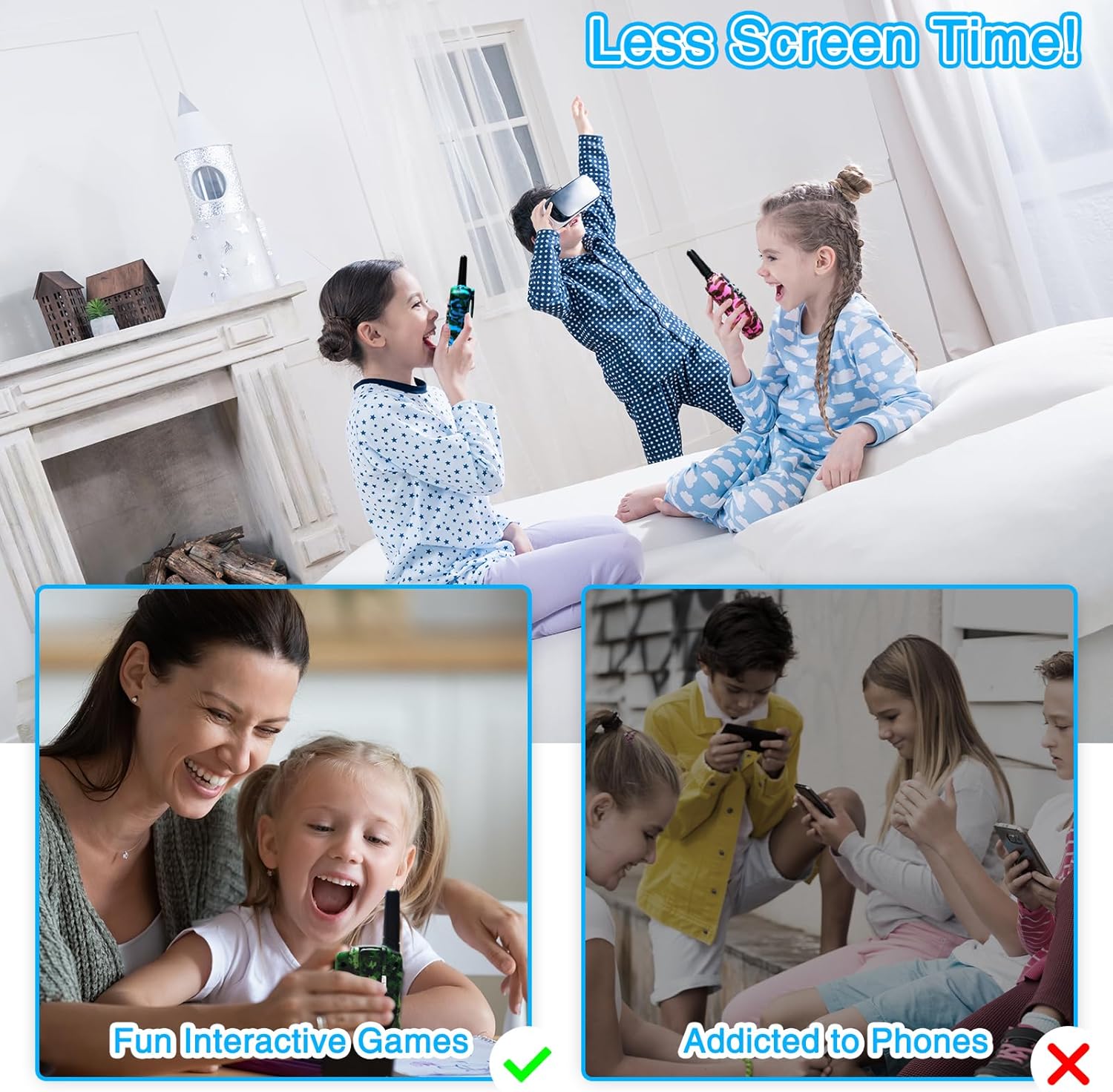 - ă3-Mile Crystal-Clear Rangeă: Reliable kids walkie talkies maintain strong signals through backyards, parks, and neighborhoods. Keeps children connected safely during adventures and group games with uninterrupted communication.