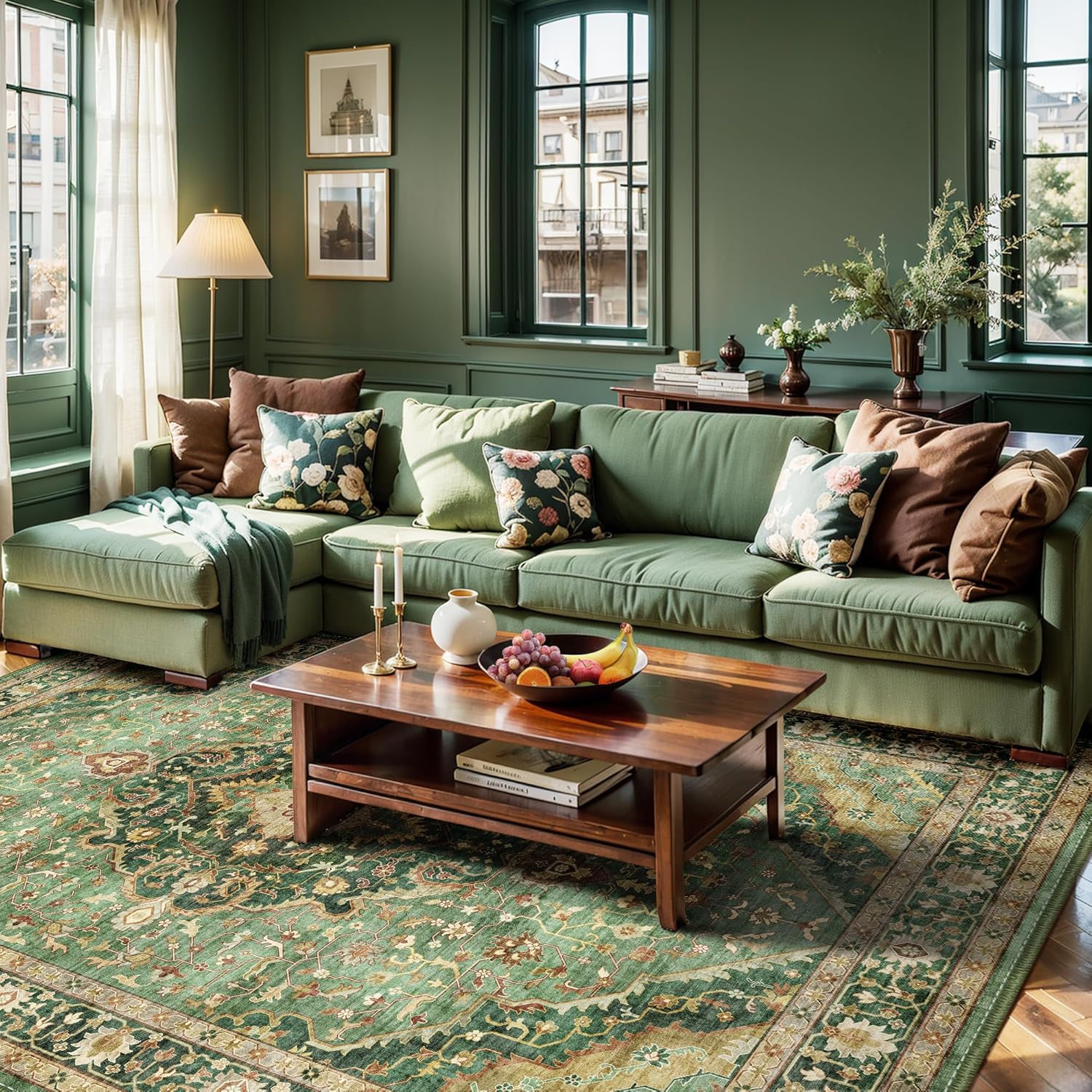 - [Non-Slip Backing]: The Deerly large green area rug is made of snowflake-shaped TPE non-slip rubber backing takes more safety. The non slip rug is ideal for everyday indoor locations where kids or pets are active.
