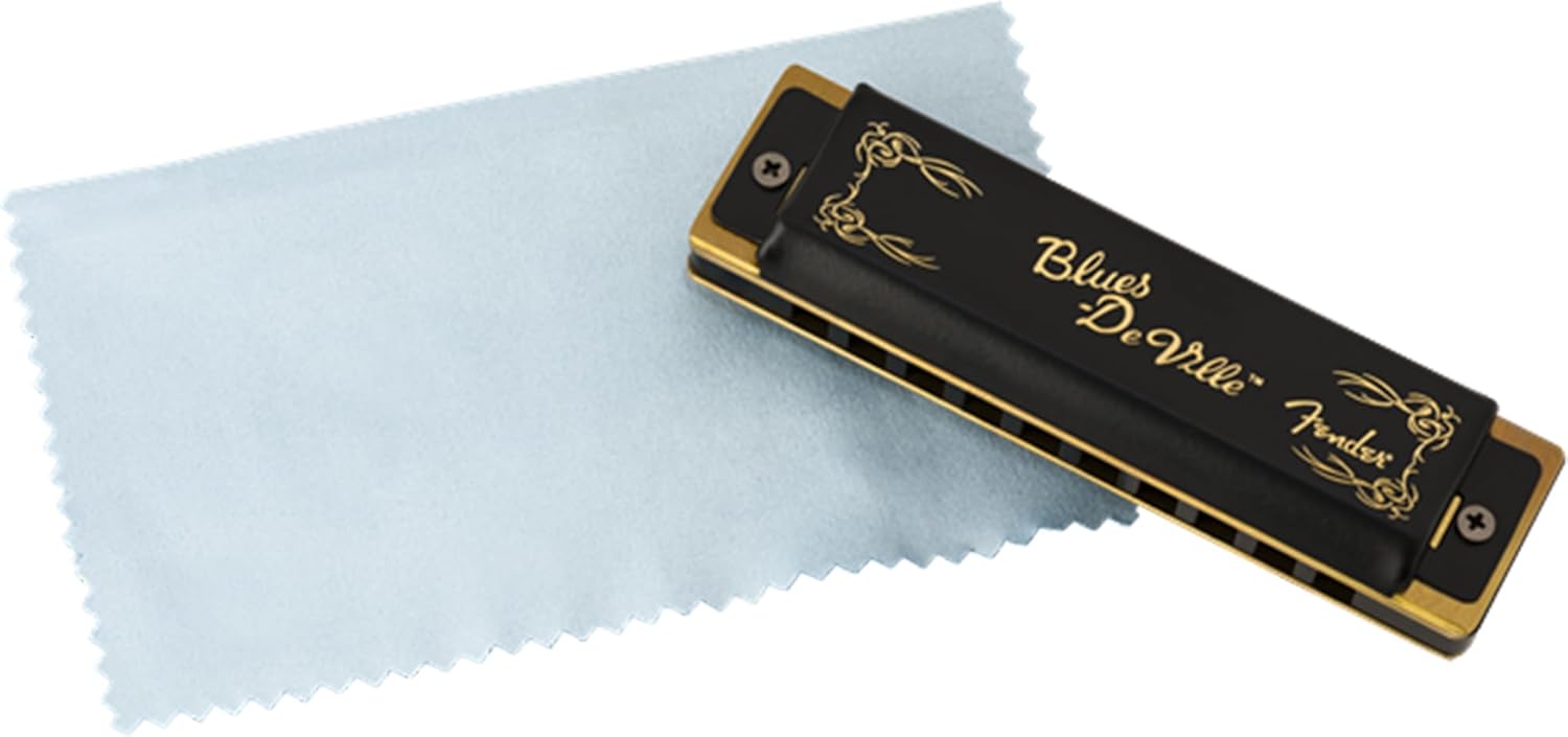 Fender Blues DeVille Harmonica - Key of D Bundle with Carrying Case, Austin Bazaar Online Manual, and Polishing Cloth
