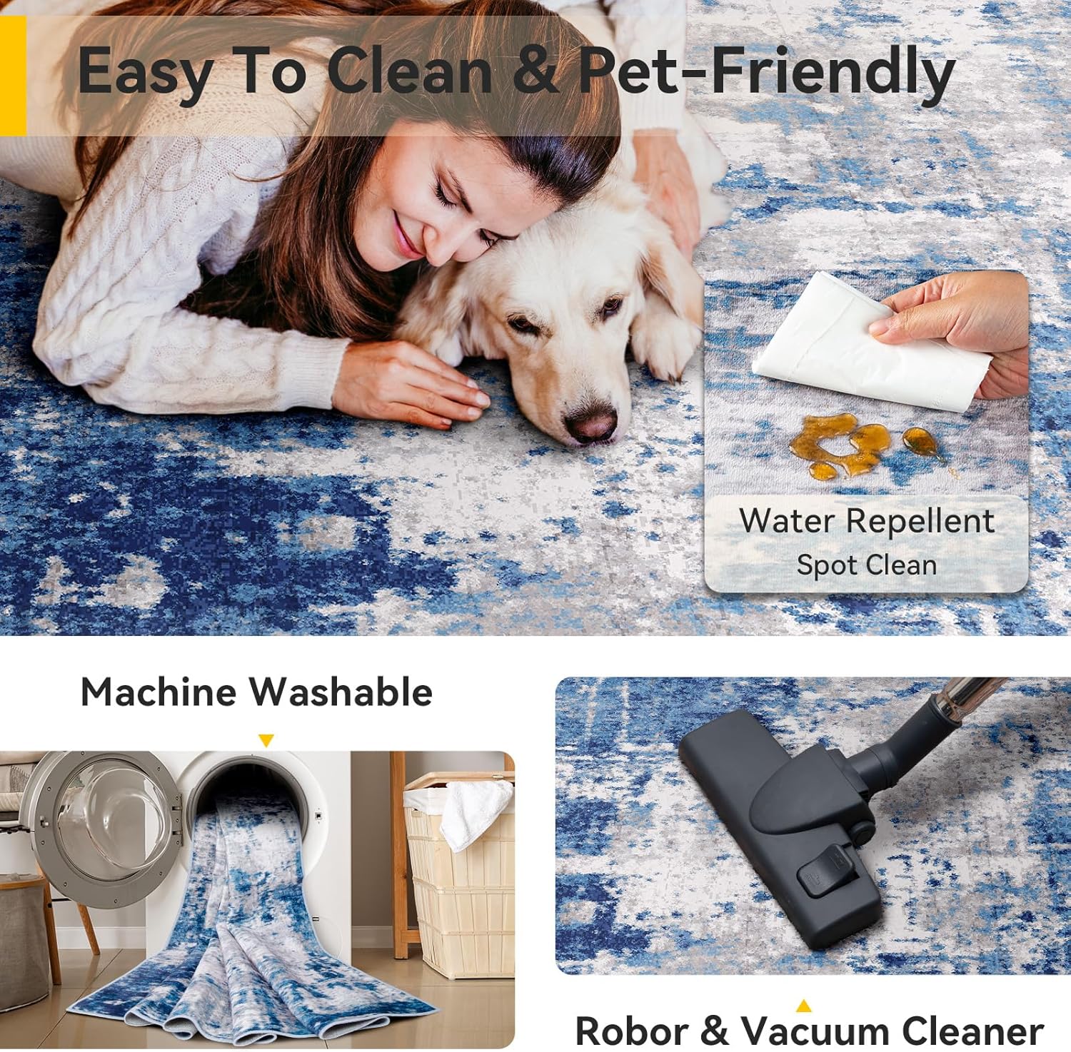 - Tides Series β Effortless style that flows with your life.This modern machine-washable non-slip rug features reinforced edges and a low-pile design that resists dirt. Its water-repellent surface makes spills easy to clean - liquids bead up for quick wiping. Simply machine wash in cold water (no bleach) to refresh. The non-slip backing keeps it securely in place. A perfect blend of function and contemporary design for active homes.