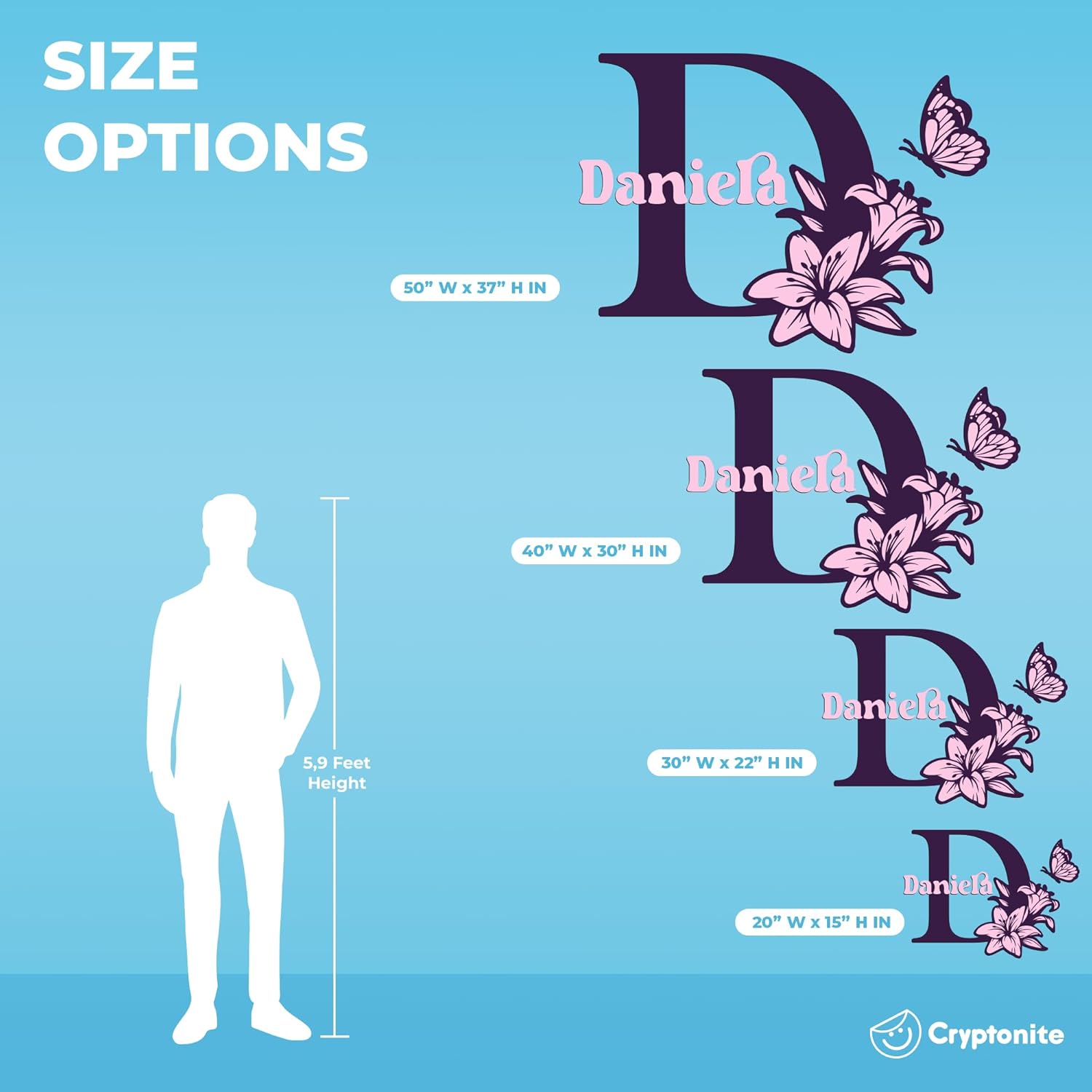 CRYPTONITE Custom Name & Initial with Lily and Butterfly I Flower Wall Decals for Bedroom Decor | Custom Decal for Girl Bedroom Decor I Pink Room Decor for Little Girl Room Decor (B. Flower)