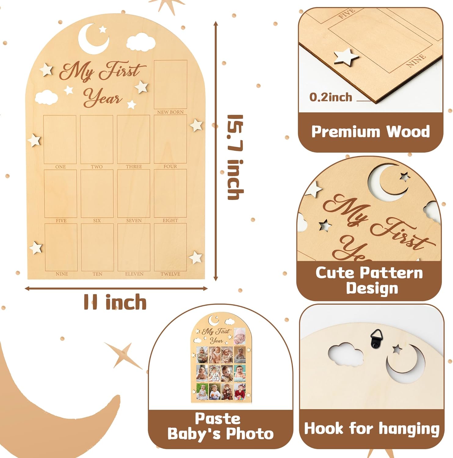 - Thoughtful Gift: Give this baby photo wooden board to new parents as an ideal gift choice for a baby shower, baby boy girl first year party, birthday party, Christmas and various other occasions. Decorate your nursery or baby's birthday party with a priceless piece of their first year.
