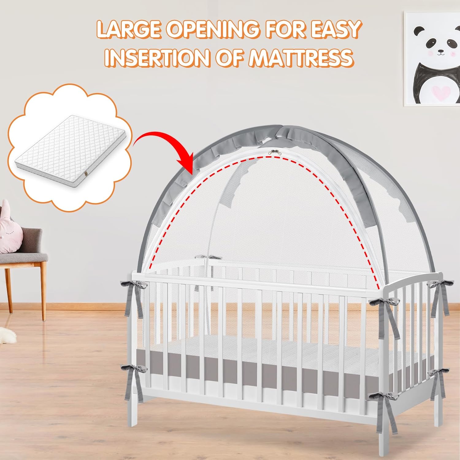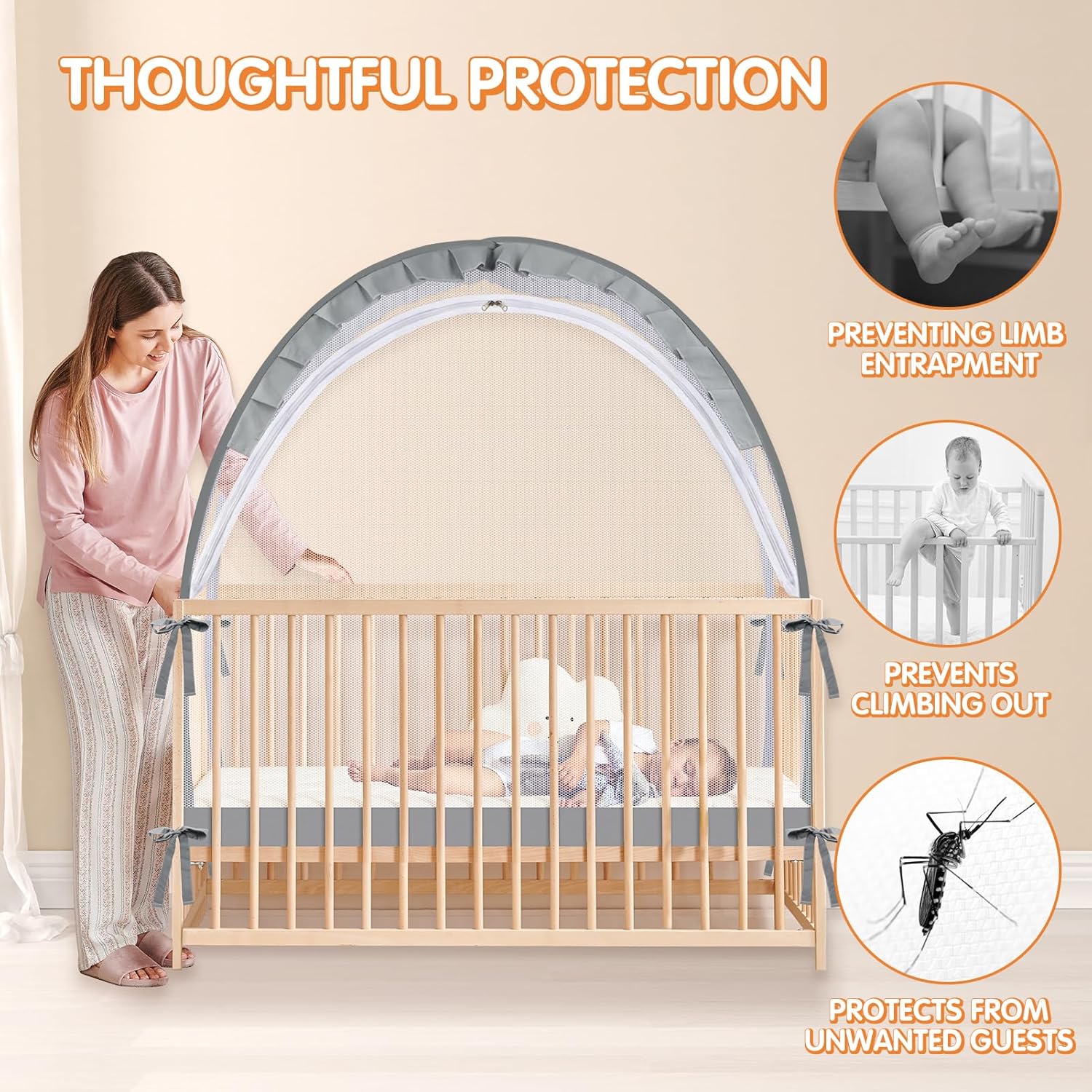 - Crib Tent To Keep Baby From Climbing Out: Keep your baby safe and secure in the crib with our crib tent for baby cribs. This crib net to keep baby in not only prevents your baby from climbing out of the crib and falling, but also effectively prevents limbs from getting caught in the rails, giving parents more peace of mind.