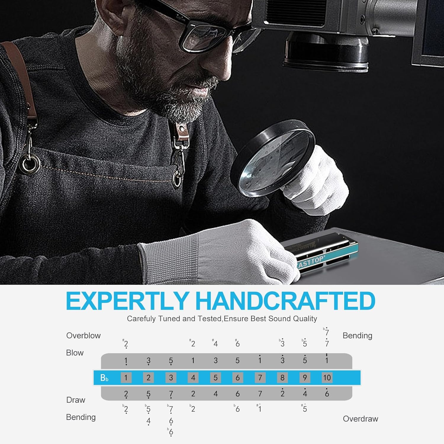 - Professional harmonica for adult-East top 10 hole professional diatonic harmonica, suitable for Blues, Folk, Rock, Country, Jazz etc. Great for professional harmonica players and beginners. This Professional Blues Harmonica has exquisite workmanship, beautiful appearance, accurate tone and responsive.