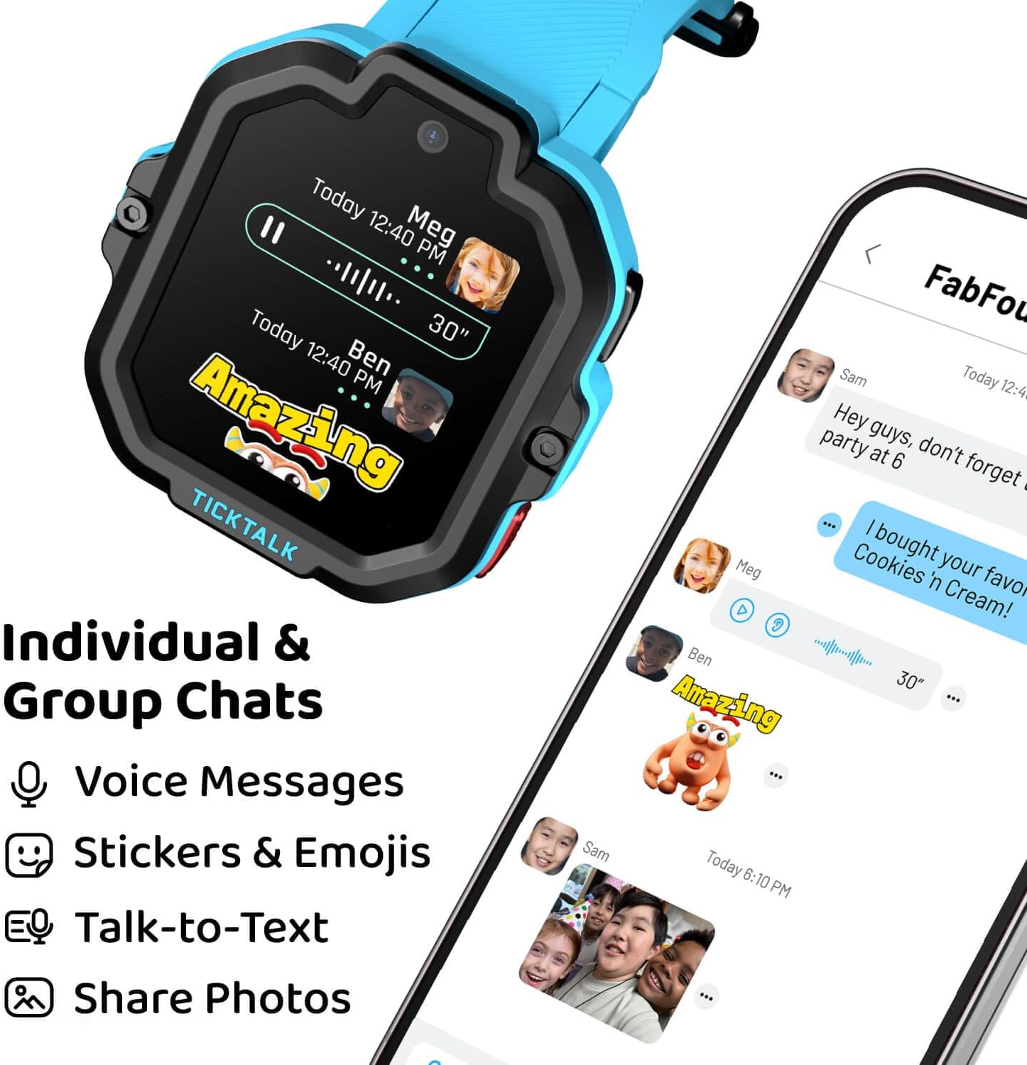 - SECURED MESSAGING: TickTalk 5 delivers the most expansive messaging experience in a kid’s smartwatch. Enjoy seamless Talk-to-Text, quick responses, voice recordings, emojis, GIFs, and group chats—all secured with end-to-end encryption. Stay connected with your family while ensuring safety and privacy.