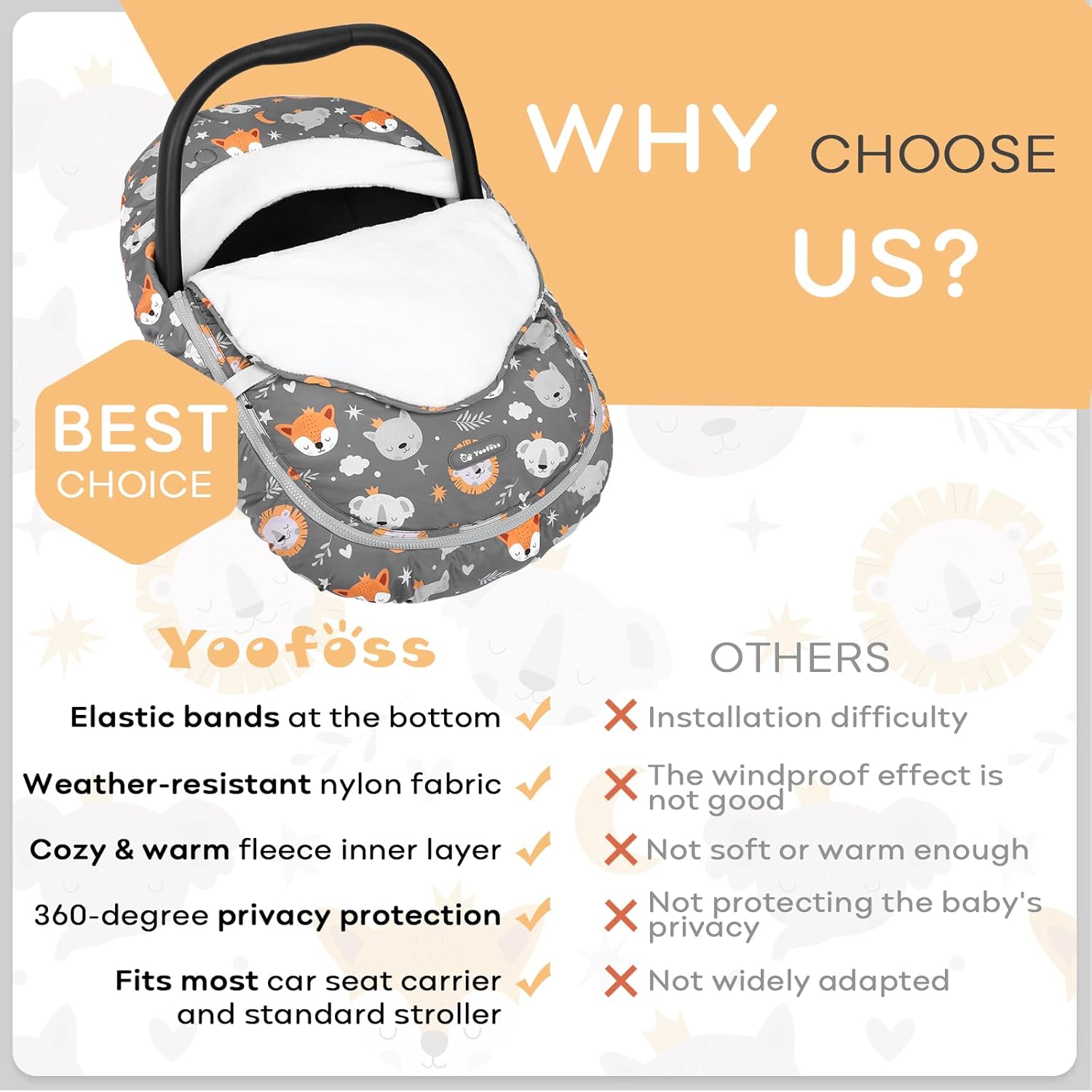- Safe and Universal Fit : The winter car seat cover for babies features with elastic bands at the bottom, it fits car seat carrier and standard stroller well, protect your baby from the elements and chilly weather. It doesn't interfere with the proper harnessing of the child or the functionality of the car seat's safety features.