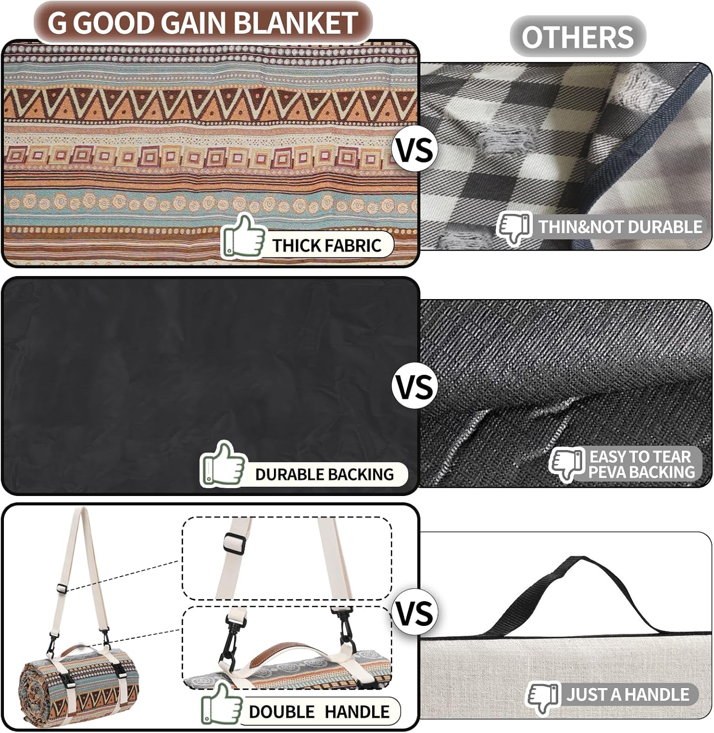 - MULT USE & GIFT - The outdoor picnic blanket can be used all year round. It can be used as the beach blanket, playing mat, crawling mat and grass mat in different occasions, such as park, family picnics, camping, travel. Also, our park blanket is perfect gift for your family and friends.