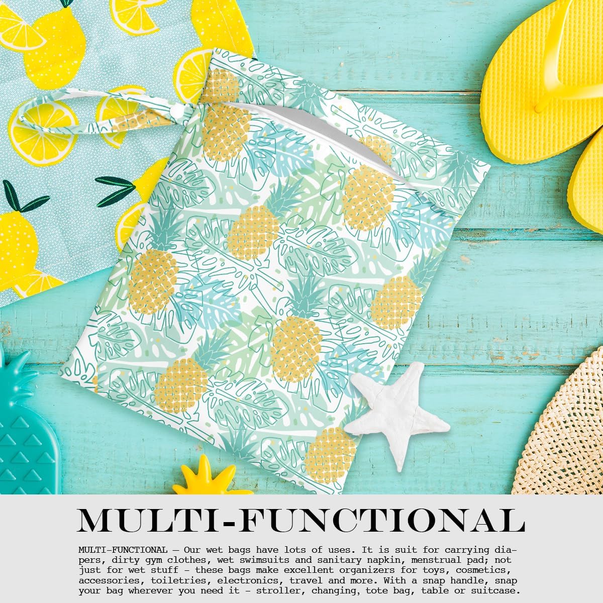 - MULTI-FUNCTIONAL – Our wet bags have lots of uses. It is suit for carrying diapers, dirty gym clothes, wet swimsuits and sanitary napkin, menstrual pad; not just for wet stuff - these bags make excellent organizers for toys, cosmetics, accessories, toiletries, electronics, travel and more. With a snap handle, snap your bag wherever you need it - , changing,tote bag, table or suitcase.
