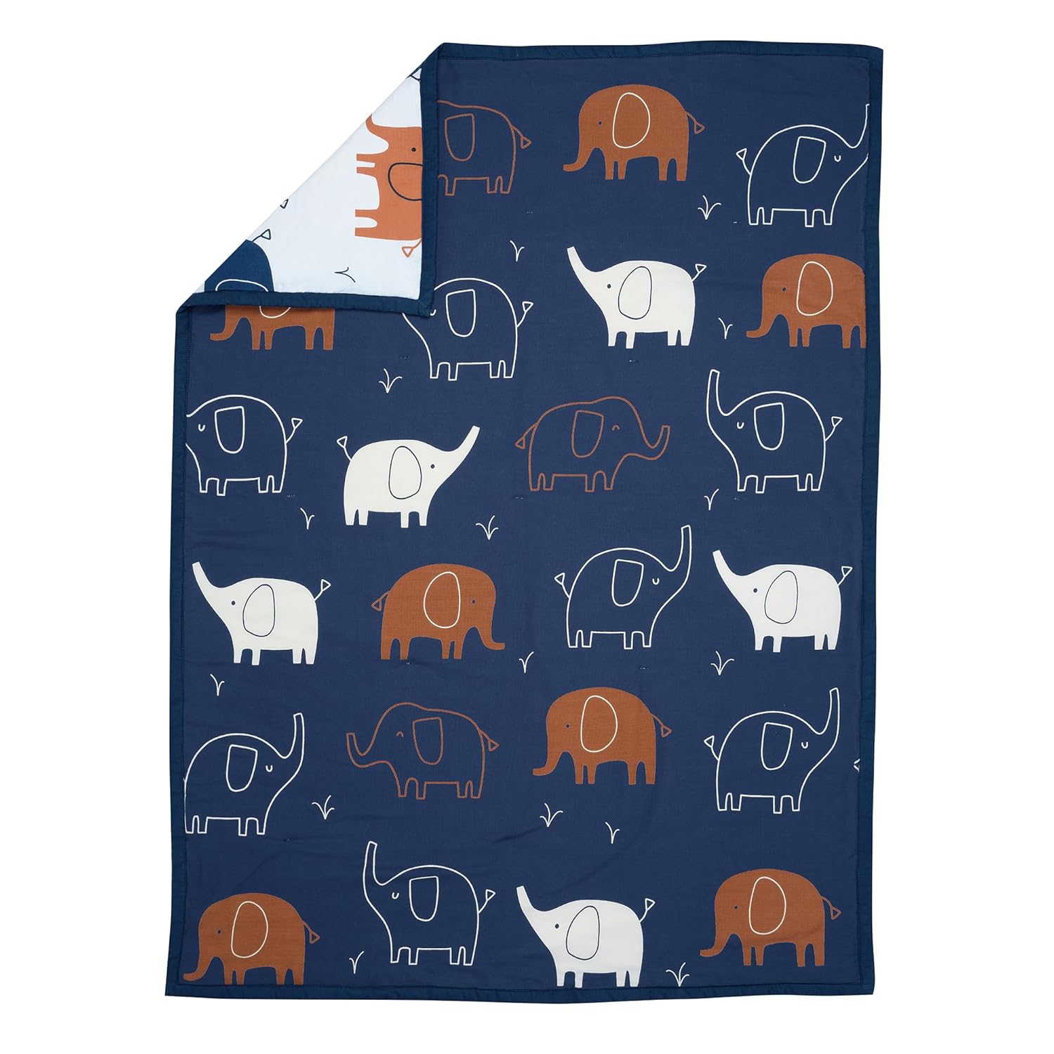 Lambs & Ivy Playful Elephant Blue/White Cotton 3-Piece Baby Crib Bedding Set