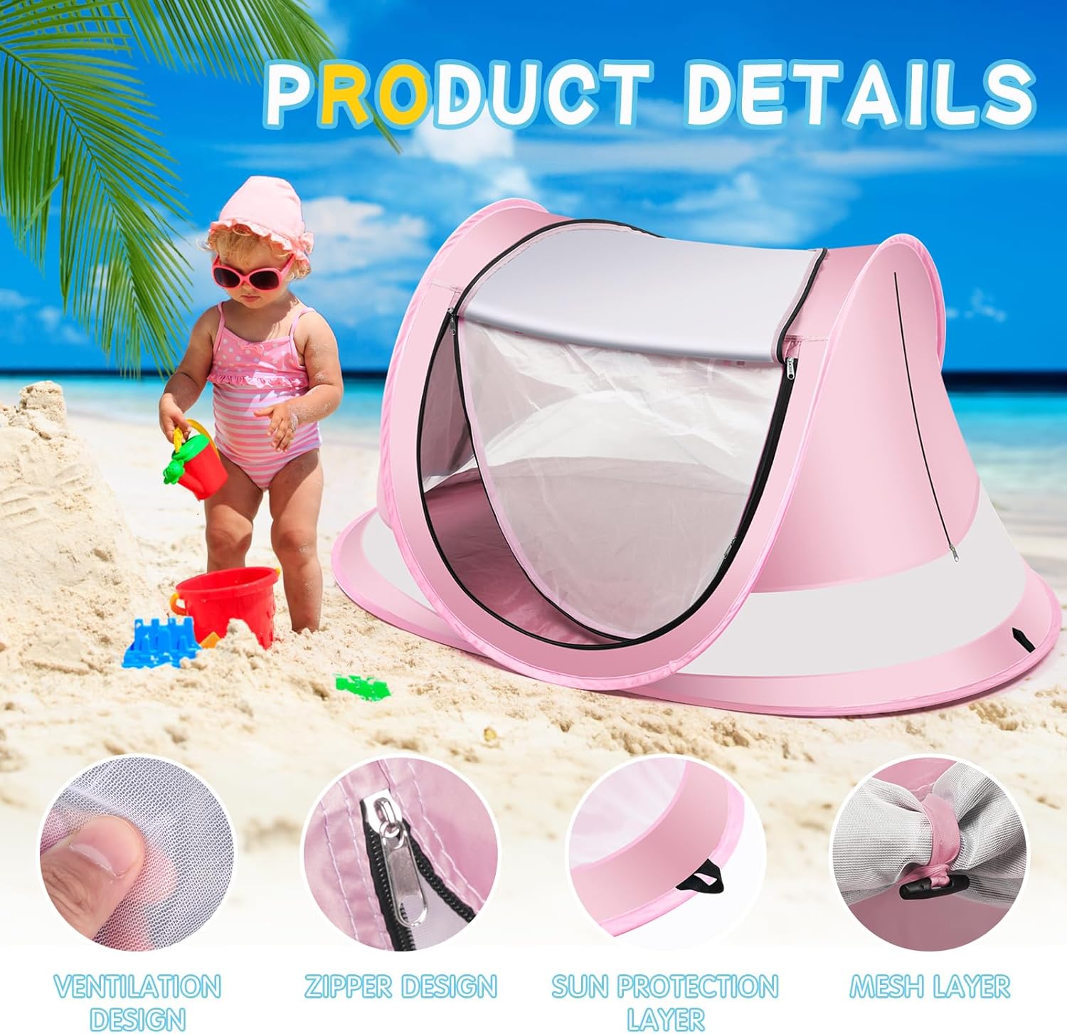 Baby Beach Tent,Large Pop Up Beach Tent Sun Shade for Beach,Portable Baby Travel Tent with Mosquito Net,Indoor Baby Play Tent,UPF 50+ UV Protection Sun Shelters for Infants