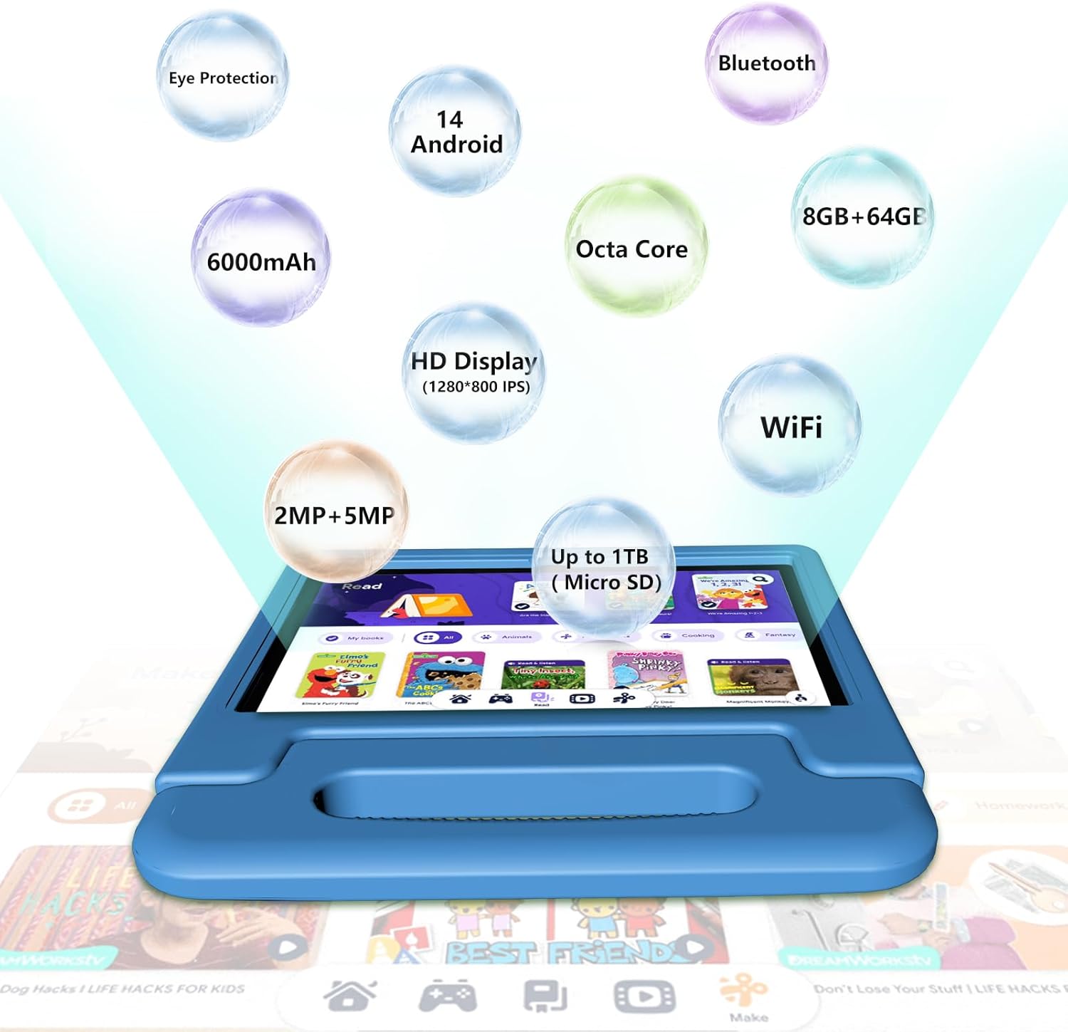 - ✔ 【Family Link Parental Control and Kids Freindly Design】The ITDULCET Kids Tablet is a safe and secure option for kids. It has Family Link parental controls for managing screen time and content access. The tablet has a high-resolution HD screen (1280*800) with a built-in blue-light protection function to protect your child's eyes. It also comes with a durable kid-proof case to prevent damage from drops. It offers a safe and fun technological experience for children.