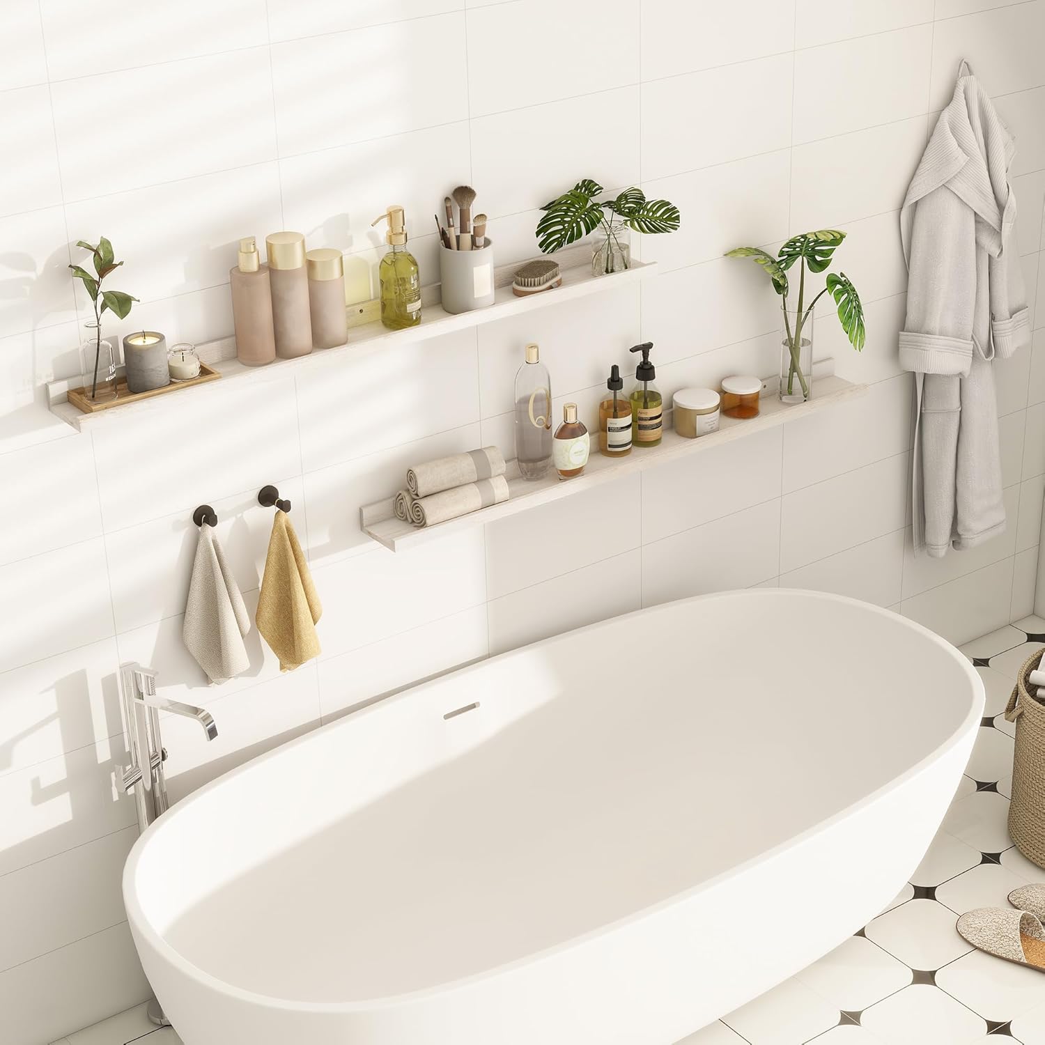 - ăWall-Mounted Floating ShelvesăTransform your living space with these versatile shelves, designed to elegantly showcase home accessories, captivating showpieces, cherished pictures, and lush potted plants. Elevate any room's decor by placing them in unused wall spaces above the fireplace, entryway, vanity, desk, or between windows.