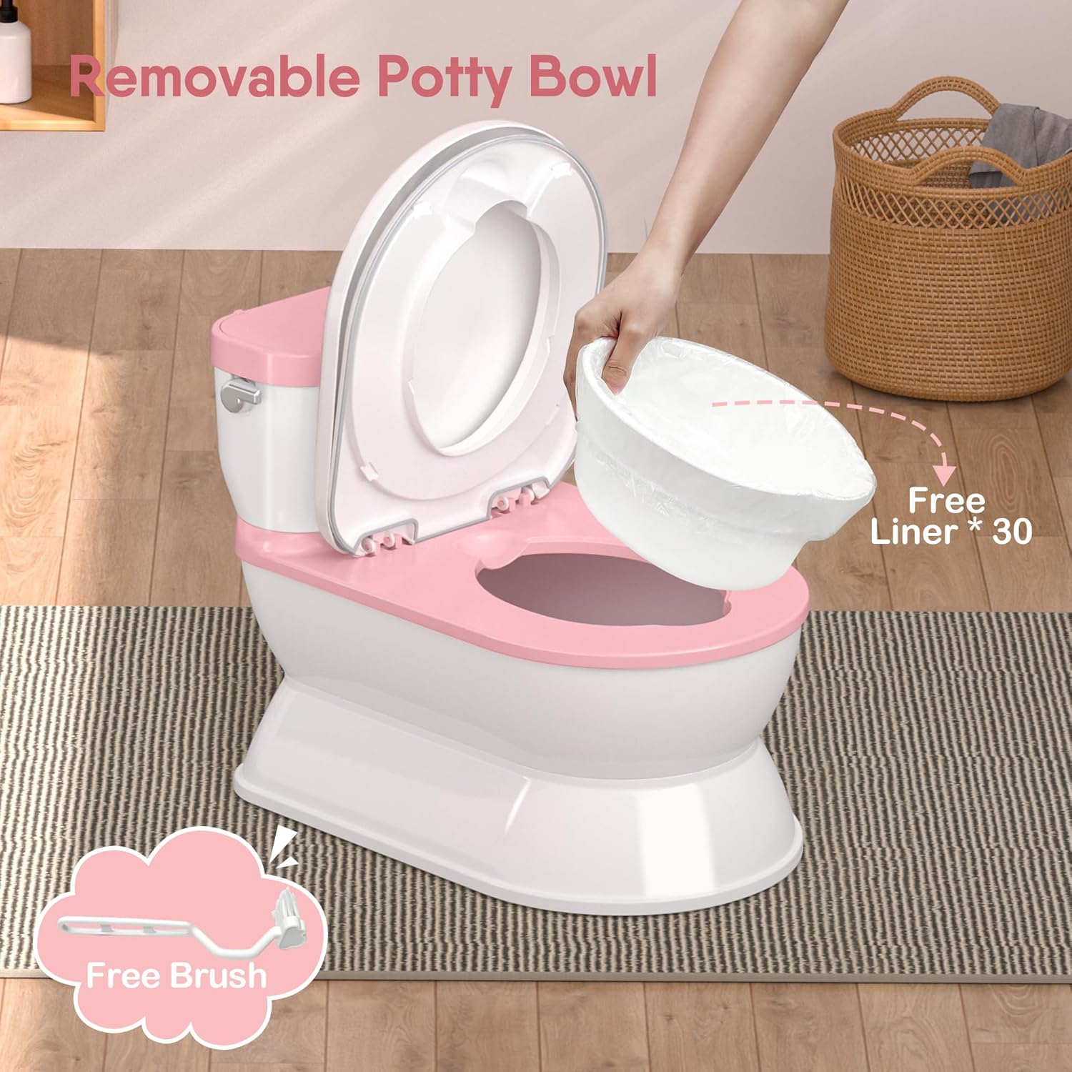 - More Realistic and Fun Sounds: Features a lifelike design that retains all elements of an adult toilet, including realistic flushing sounds. Makes potty training more engaging and fun