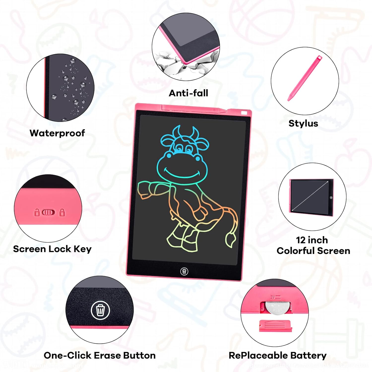 - Free Child’s Imagination: Pbeknco 2PCS LCD writing tablet for kids provides 12 inches of space for kid’s writing and drawing, free children's imagination. The eye-protection colorful screen of doodle board provides a better painting experience, avoiding injury to a child’s eyes from long-term use.