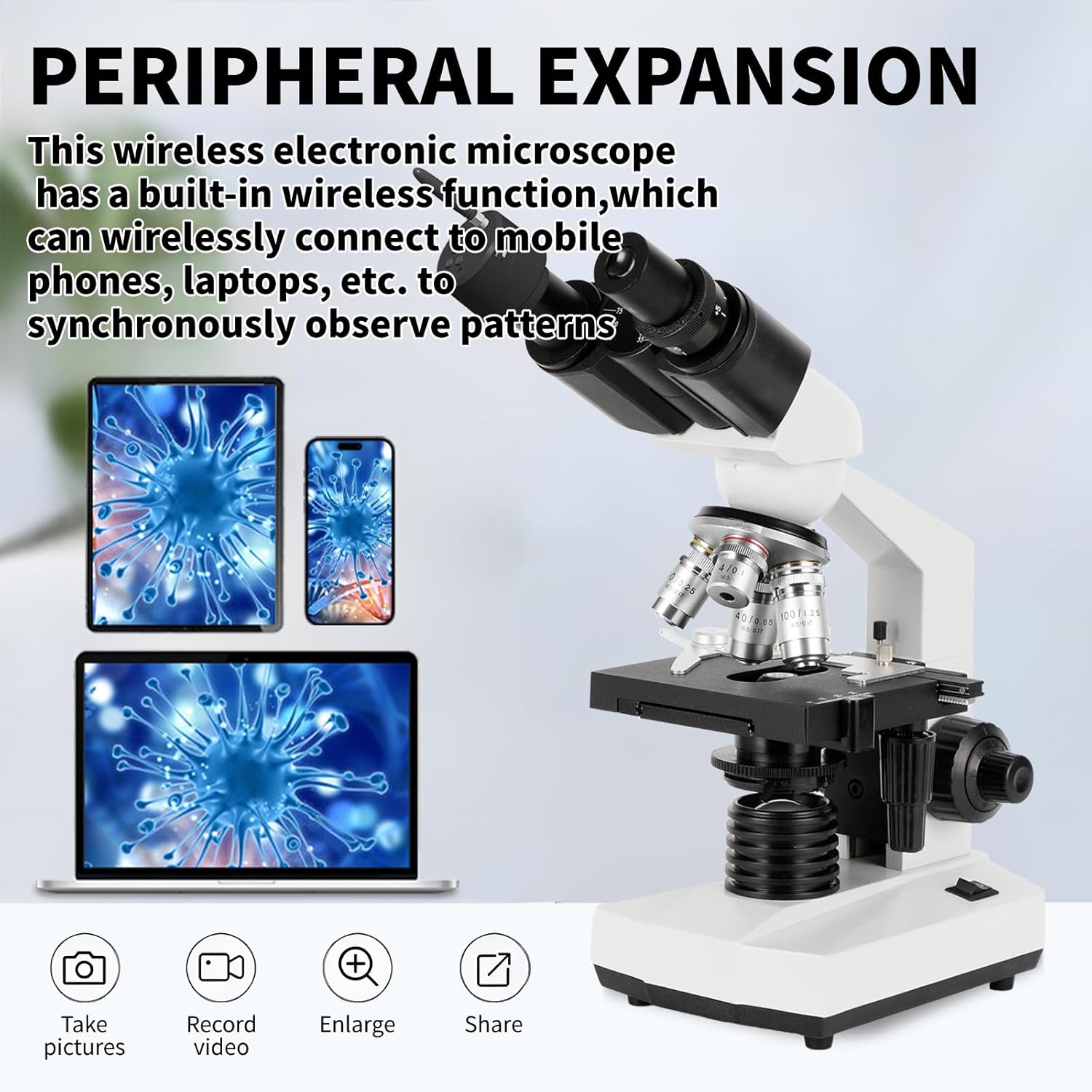 - The Fuleniao microscope has added a WiFi version electronic eyepiece that supports wireless connectivity to mobile phones, tablets, and computers. Make the microscope experience more convenient and leisurely!