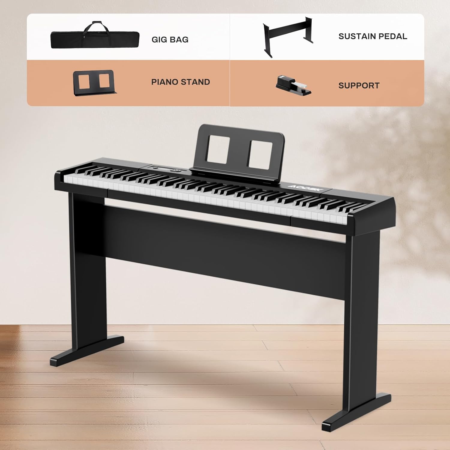 Aodsk 88 Key keyboard piano, Portable Digital Piano with Wooden stand Set for Beginners,128 Tone,128 Rhythm, 20 Demo Song, with Sustain Pedal, Carrying Case, Complimentary Online Piano Lessons
