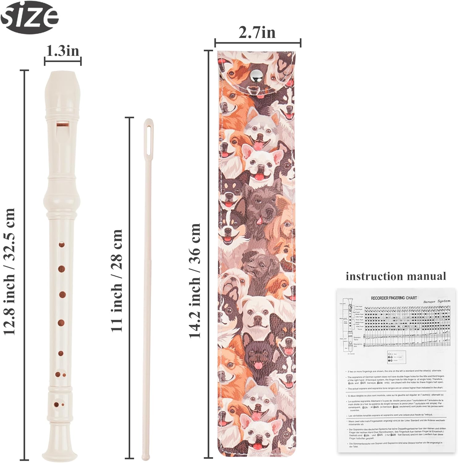 Recorder Instrument for Beginner Kids Adults,8-Hole Soprano Descant Recorder Music Flute with with Cleaning Rod & Leather Case For School Student Home Entertainment(2-Dense Dog)