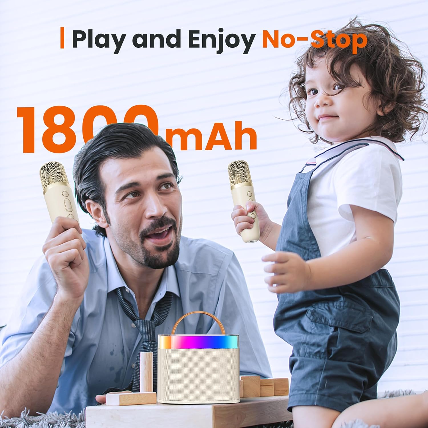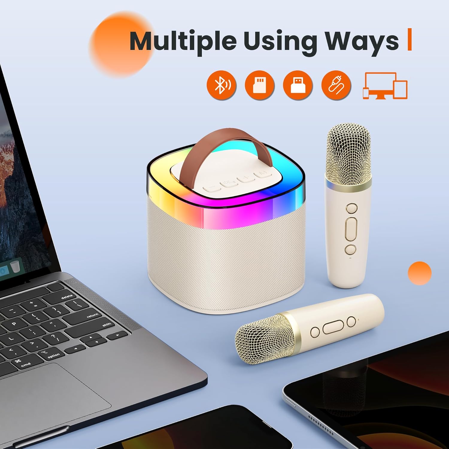 YLL Karaoke Machine for Adults Kids, Portable Bluetooth Karokee Speaker with 2 Wireless Microphones,Singing Karaoke Machine Built-in LED Lights for Birthday Gifts, Family Home Party(Beige)