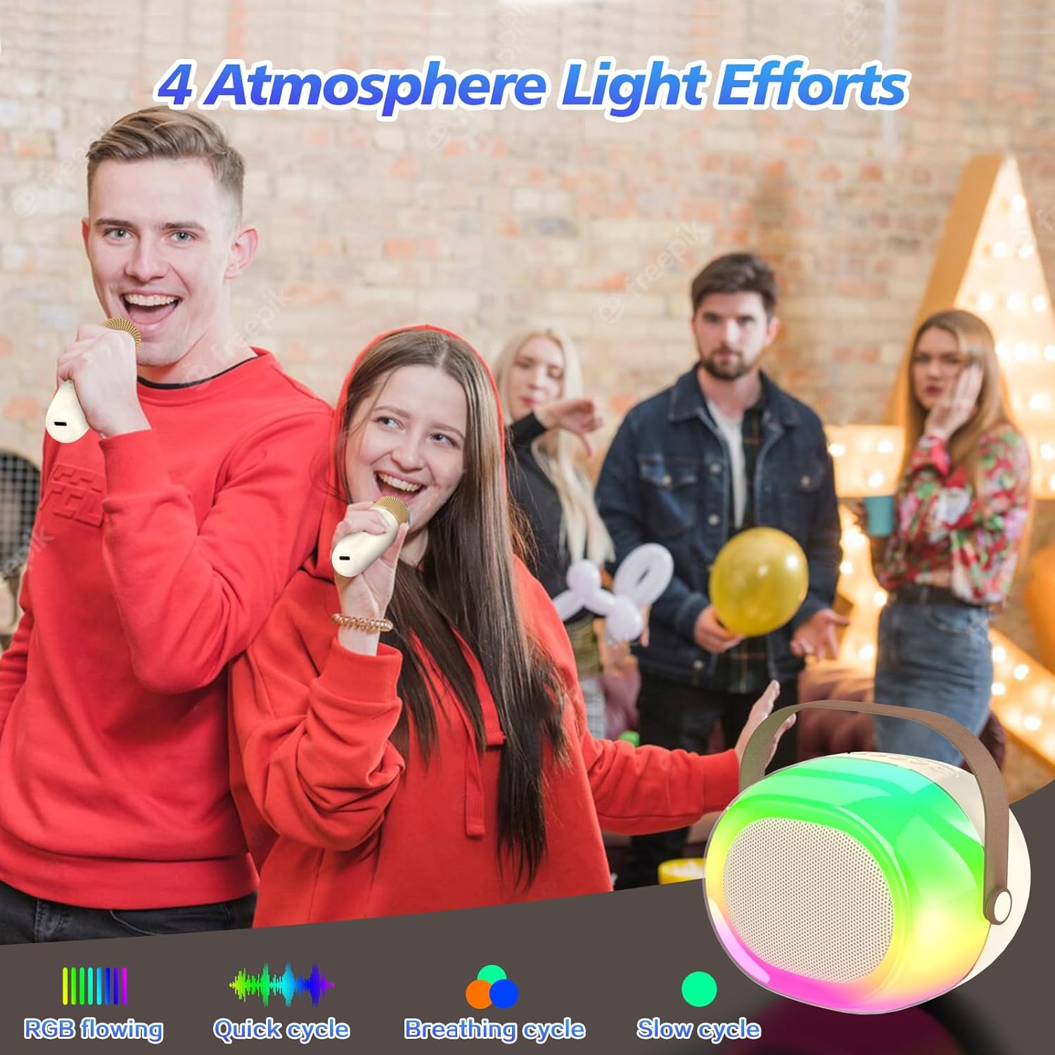 Karaoke Machine for Adults,Portable Bluetooth Speaker with Two Wireless Microphones and Dynamic Lights,Support TF/USB/AUX,Birthday Gifts for Girls/Boys//Men/Women/Family Home Party
