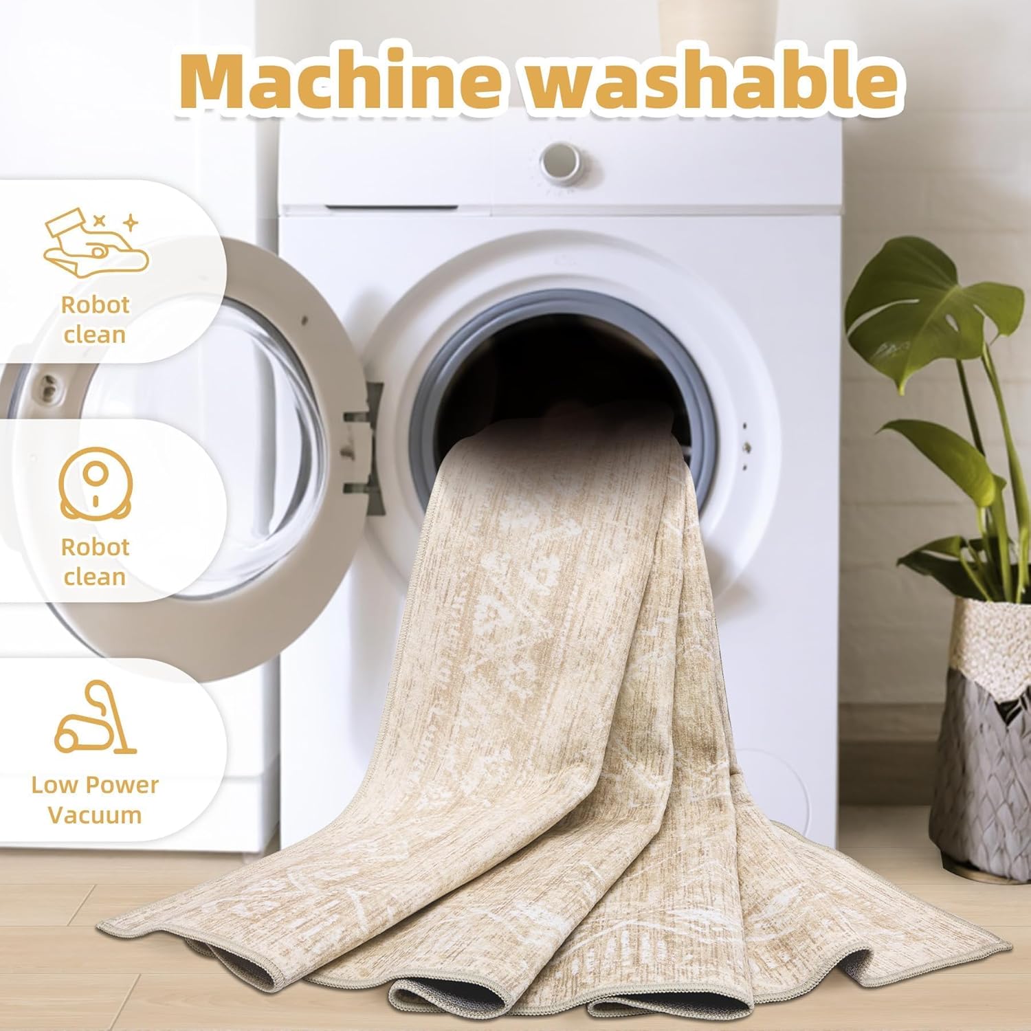 Moroccan Large Area Rug 5x7 - Soft Machine Washable Geometric Boho Distressed Farmhouse Rug Morden Stain Resistant Indoor Floor Carpet for Bedroom Dining Table Nursery Home Office (5 x 7, Beige)