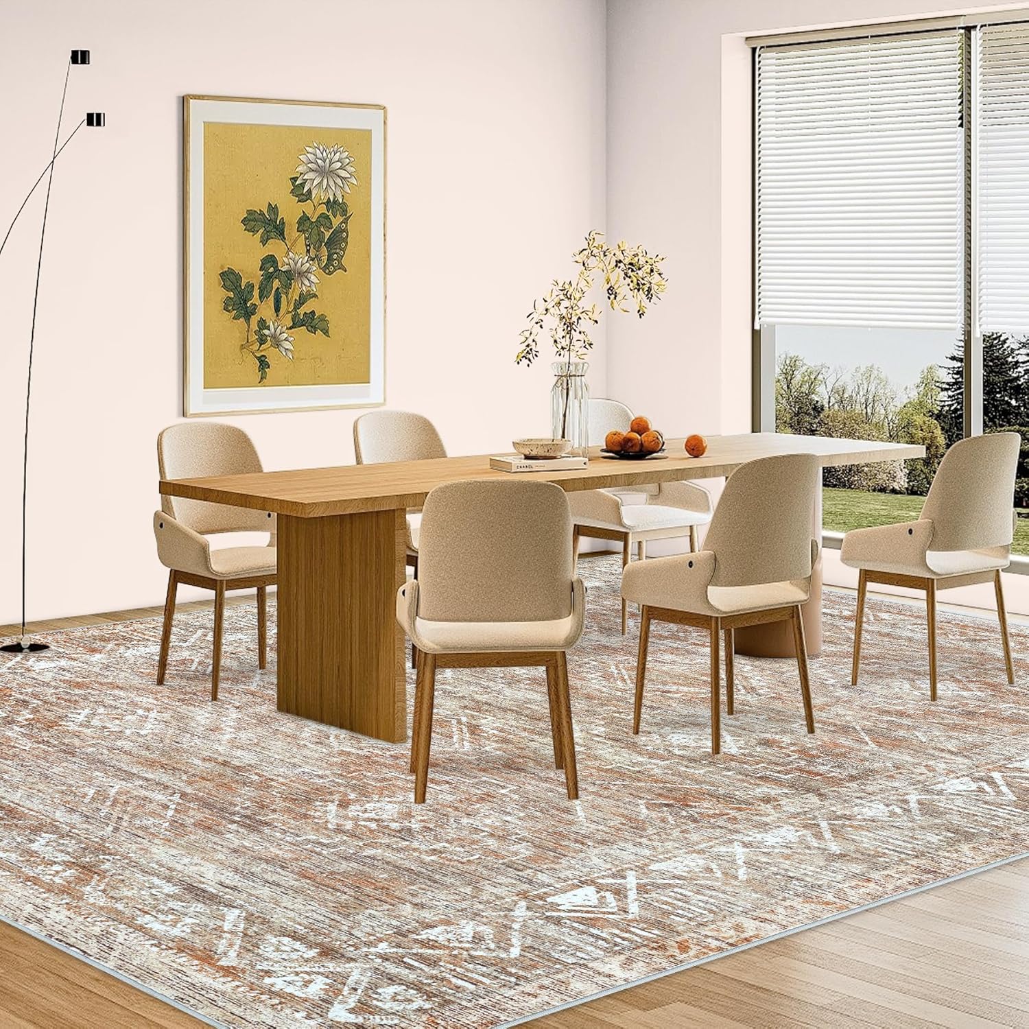 Large Living Room Area Rug 8x10 - Machine Washable Vintage Boho Moroccan Rugs Geometric Neutral Rug Non-Shedding Low Pile Distressed Farmhouse Carpet for Bedroom Nursery Classroom Dorm (8 x 10, Brown)