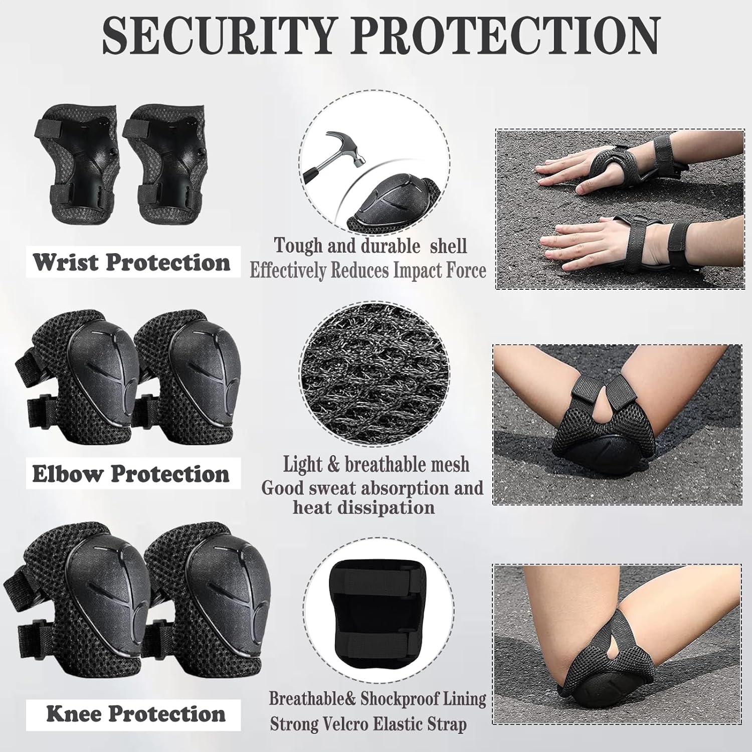 - 【Suitable for Multiple Sports】ours The kids helmet and knee elbow pads with wirst guards are designed for kids sports saftey protection especially for any outdoor activities for many outdoor sports such as skating, skateboard, scooters roller, skating balance bike helmet can provide professional protection to your children, our kids away from hurt when they enjoy the joy of sports.
