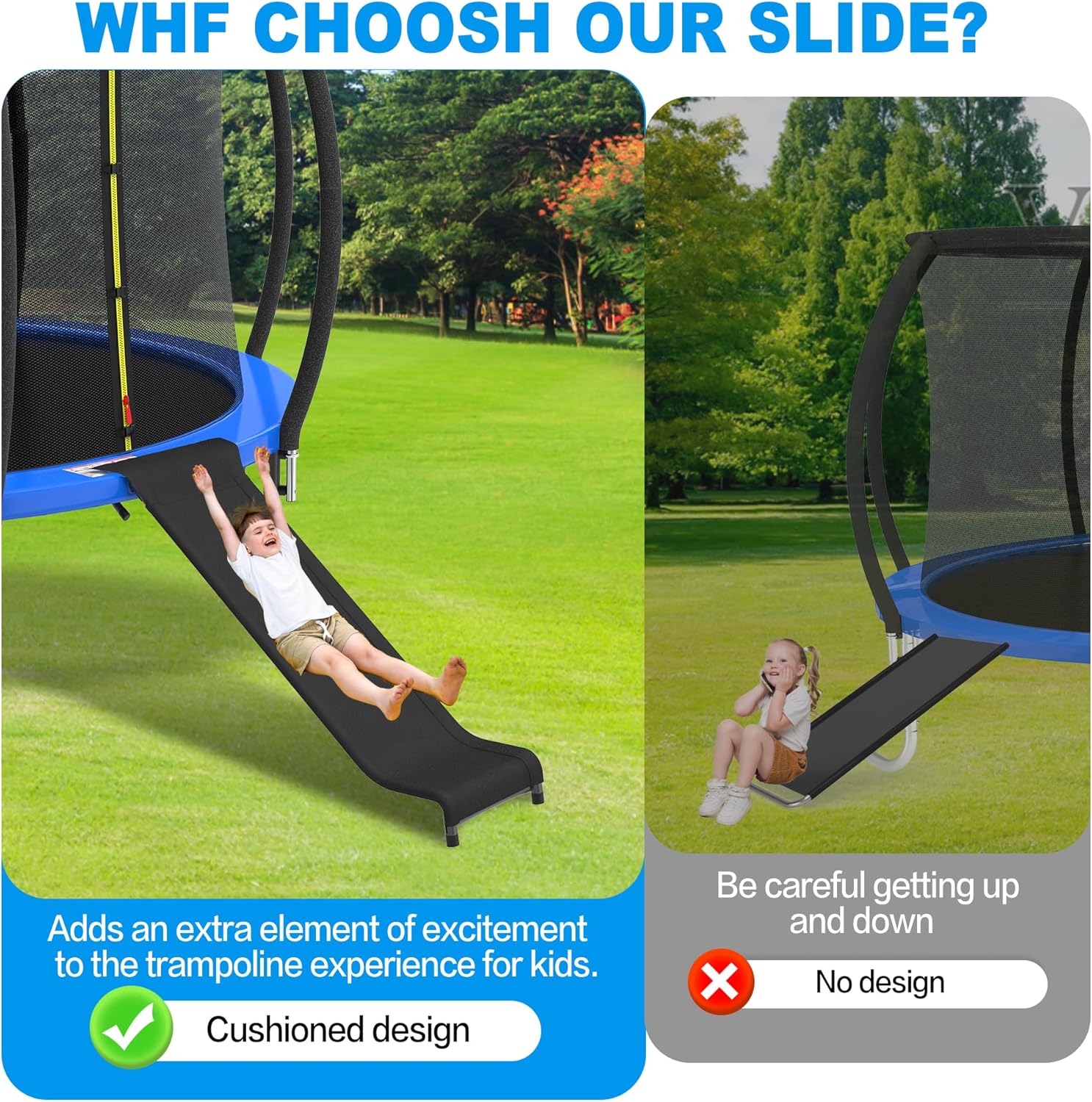 - [Easy Assembly Slides] The trampoline parts slide installation all you need are included in the package. Only need a while time to assemble by adult, please refer to install instruction carefully