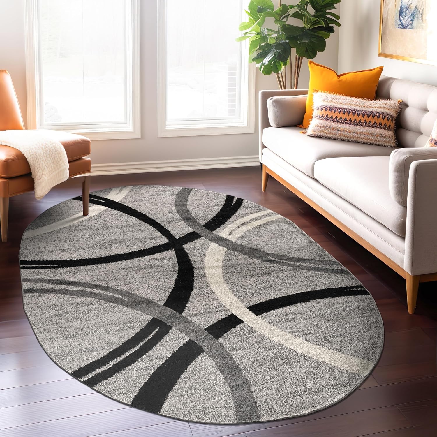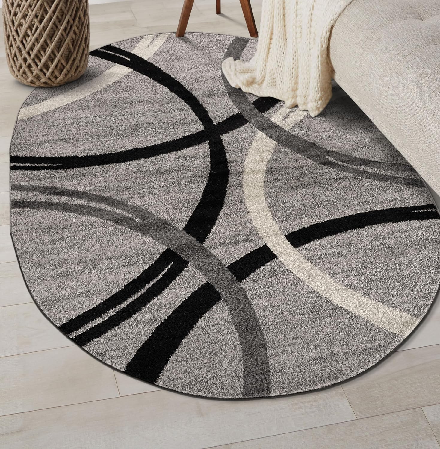 Rugshop Modern Wavy Circles Design Oval Area Rug 5' x 7' Gray