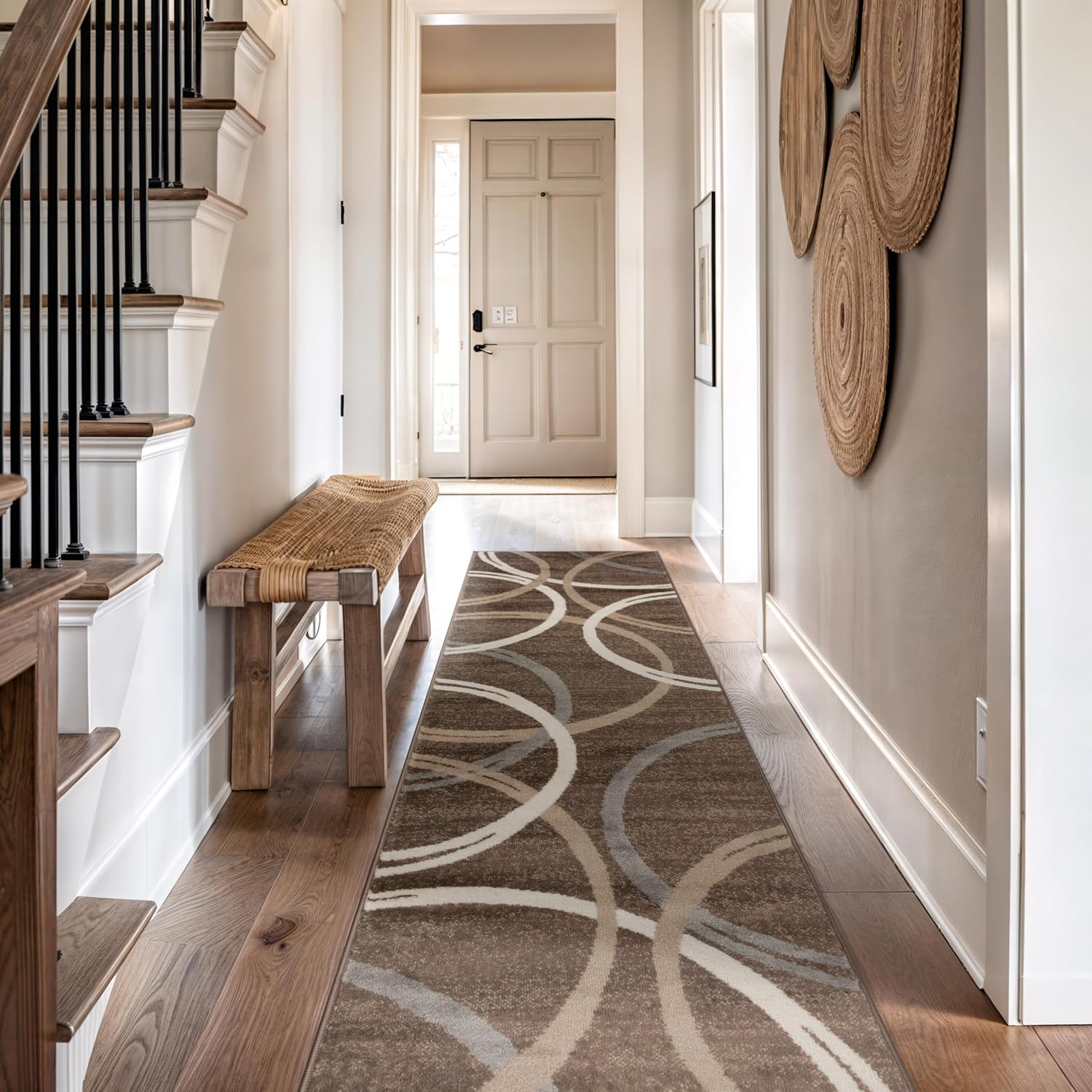 Rugshop Modern Wavy Circles Design Runner Rug 2'7" x 12' Brown